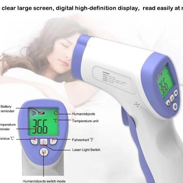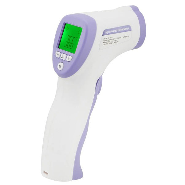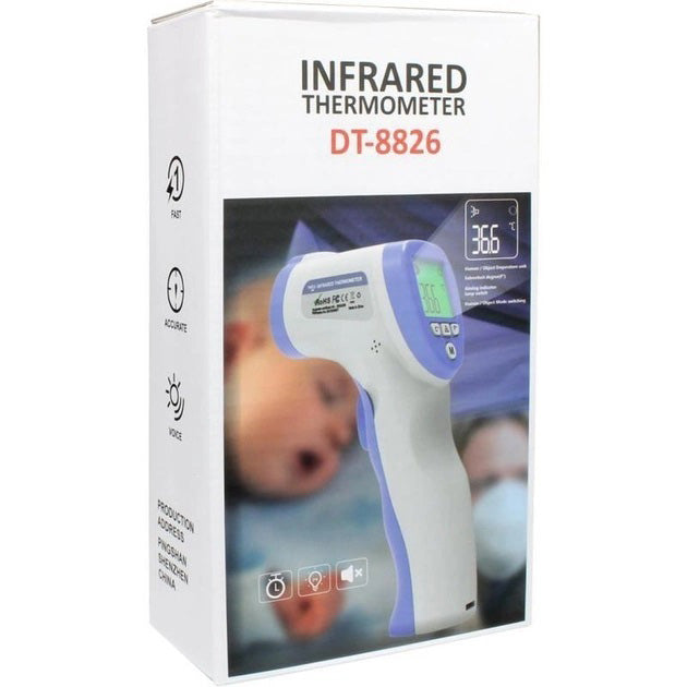 Быстро и точно измерить температуру тела и окружающей среды Вам поможет инфракрасный термометр DT-8826. Универсальным современным термометром DT-8826 могут воспользоваться абсолютно все члены семьи, как взрослые, так и маленькие дети. Главным преимуществом является замечательная возможность измерить температуру, не касаясь тела человека, так как процесс измерения осуществляется с помощью инфракрасного луча. На встроенном жидкокристаллическом дисплее термометра, буквально за долю секунды. Благодаря звуковому сигналу пользователь узнает об окончании процесса измерения. Прибор изготовлен из легкого и прочного пластика, имеет ЖК-дисплей с подсветкой, работает от двух батареек типа АА (не идут в комплекте).