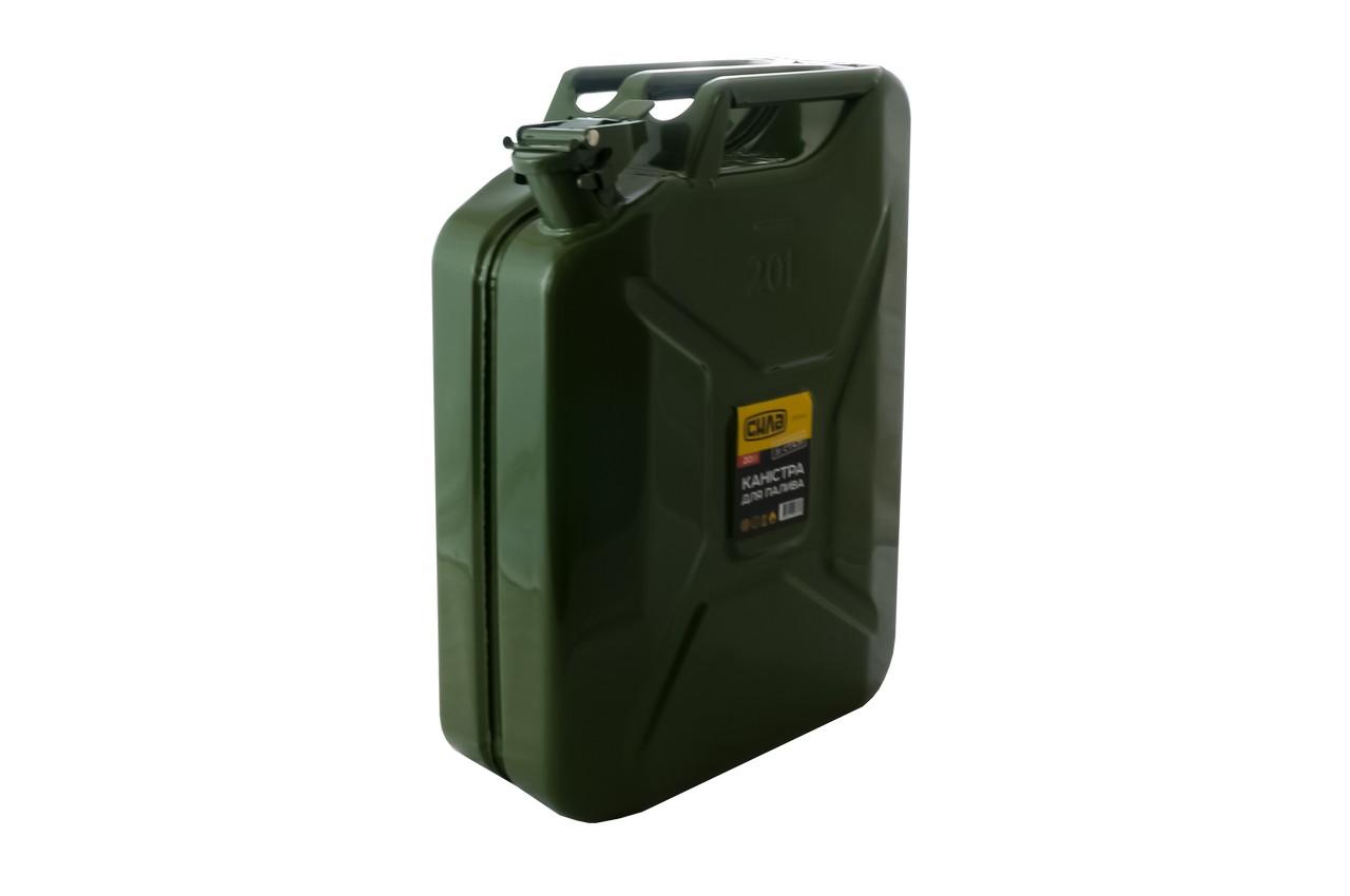 Металлическая канистра предназначена для хранения топлива, ГСМ. Бренд - Сила. Объем, л - 20. Материал - металл. Тип рукоятки: Тройная; Толщина металла: 0,8 мм