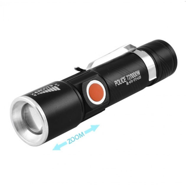 Карманный фонарик Police 616-XPE, Портативный светодиодный фонарь с зарядкой, Алюминеевый фонарь