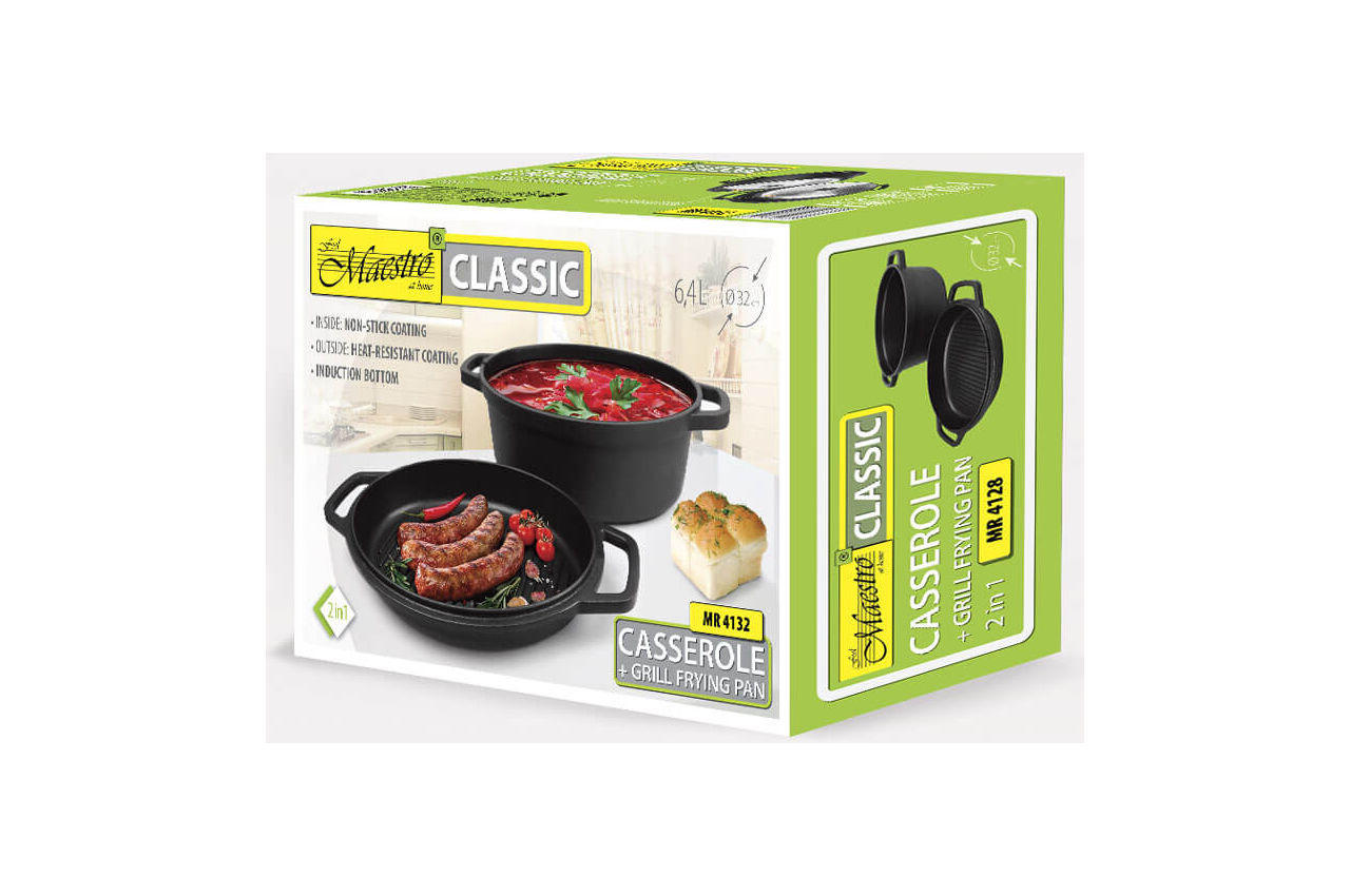 Кастрюля антипригарная Maestro - 320 мм x 6,4 л с крышкой-сковородкой