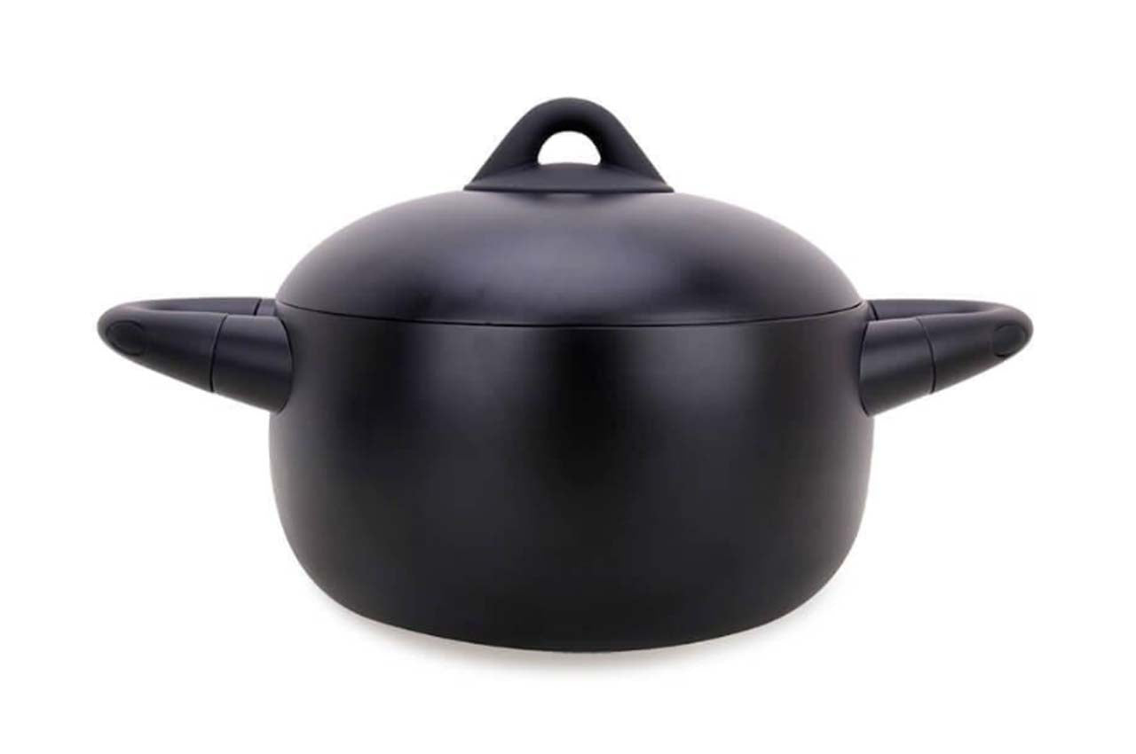 Кастрюля антипригарная Maestro-Elite - 220мм x 4л с очень интересным дизайном. Внешне похожа на маленький глиняный горшок. На самом деле материал – крепкий алюминий. Внутри кастрюля покрыта плотным антипригарным покрытием. Снаружи – матовым термостойким лаком. Для того чтобы избежать ожогов, ручки сделаны из бакелита с силиконовыми вставками. Благодаря своей пузатой форме модель очень вместительна и удобна в использовании.