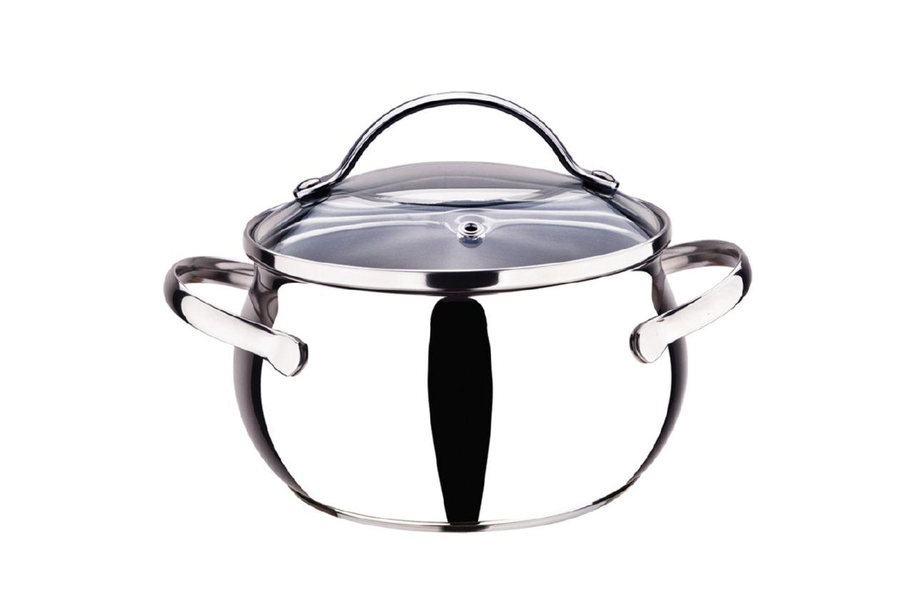 Кастрюля из нержавеющей стали с многослойным дном. Крышка стеклянная, жаропрочная с пароотводом. Возможно использовать на всех типах плит. Возможно мыть в посудомоечной машине.