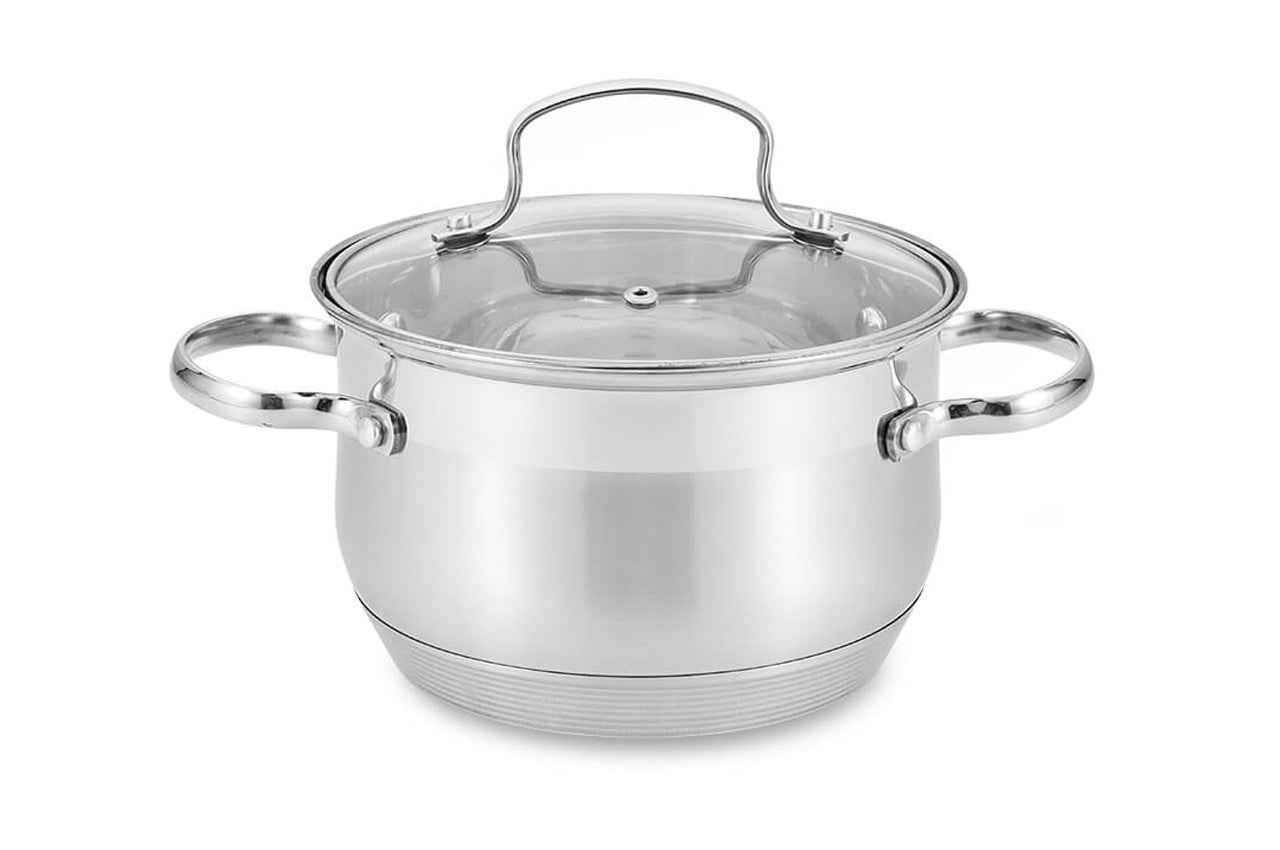 Кастрюля Maestro MR 3512-26 объёмом 8,2 литра (самая большая в данной модельной линейке посуды), изготовлена из высококачественной нержавеющей стали, комбинированный корпус матовый с зеркальной полосой вверху. На передней стороне нанесен логотип Maestro Basic. Толстое термоаккумулирующее дно подходит для любых источников тепла включая индукцию. Стеклянная крышка диаметром 26 см с отверстием для выхода пара и защитным стальным ободком по периметру.