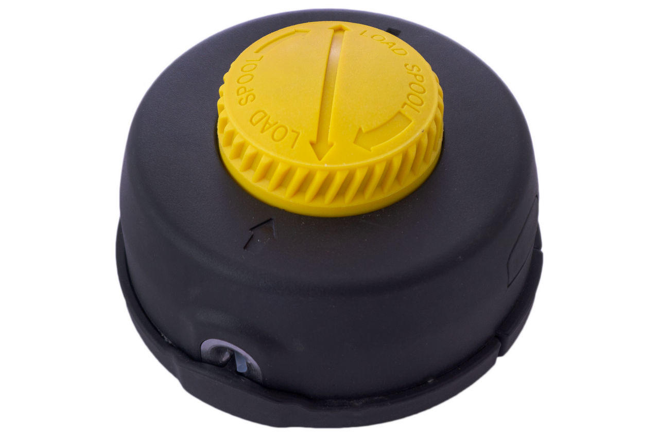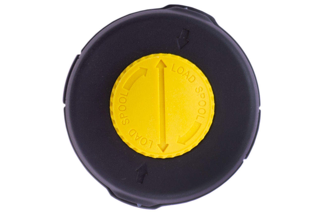 Катушка для триммера автоматическая. Для обновления лески ее не надо разбирать. Достаточно отрезать кусок нужной длины, продеть его через катушку, предварительно совместив отверстие для лески со стрелкой на триммерной головке. Далее совмещают два конца, чтобы выровнять их по длине, а затем наматывают леску, прокручивая головку. Плотность намотки равномерная, за этим следит несложный механизм.