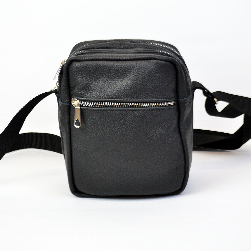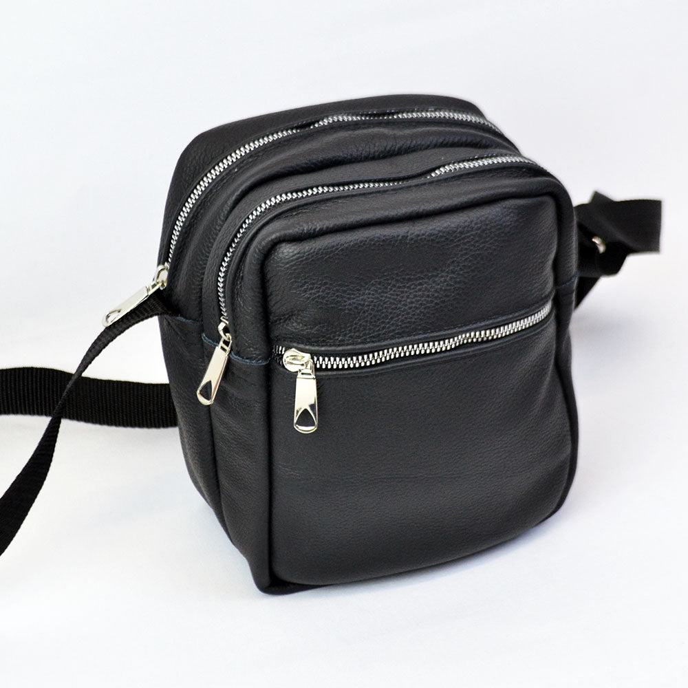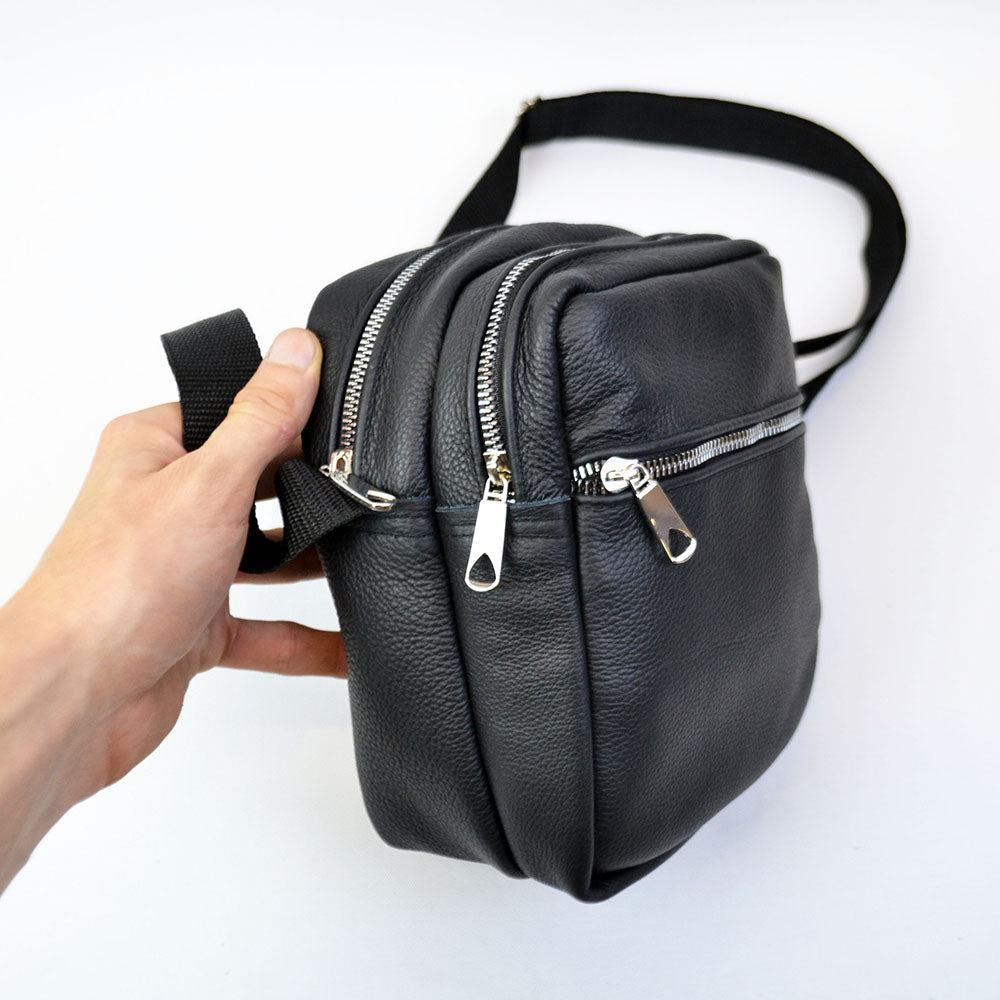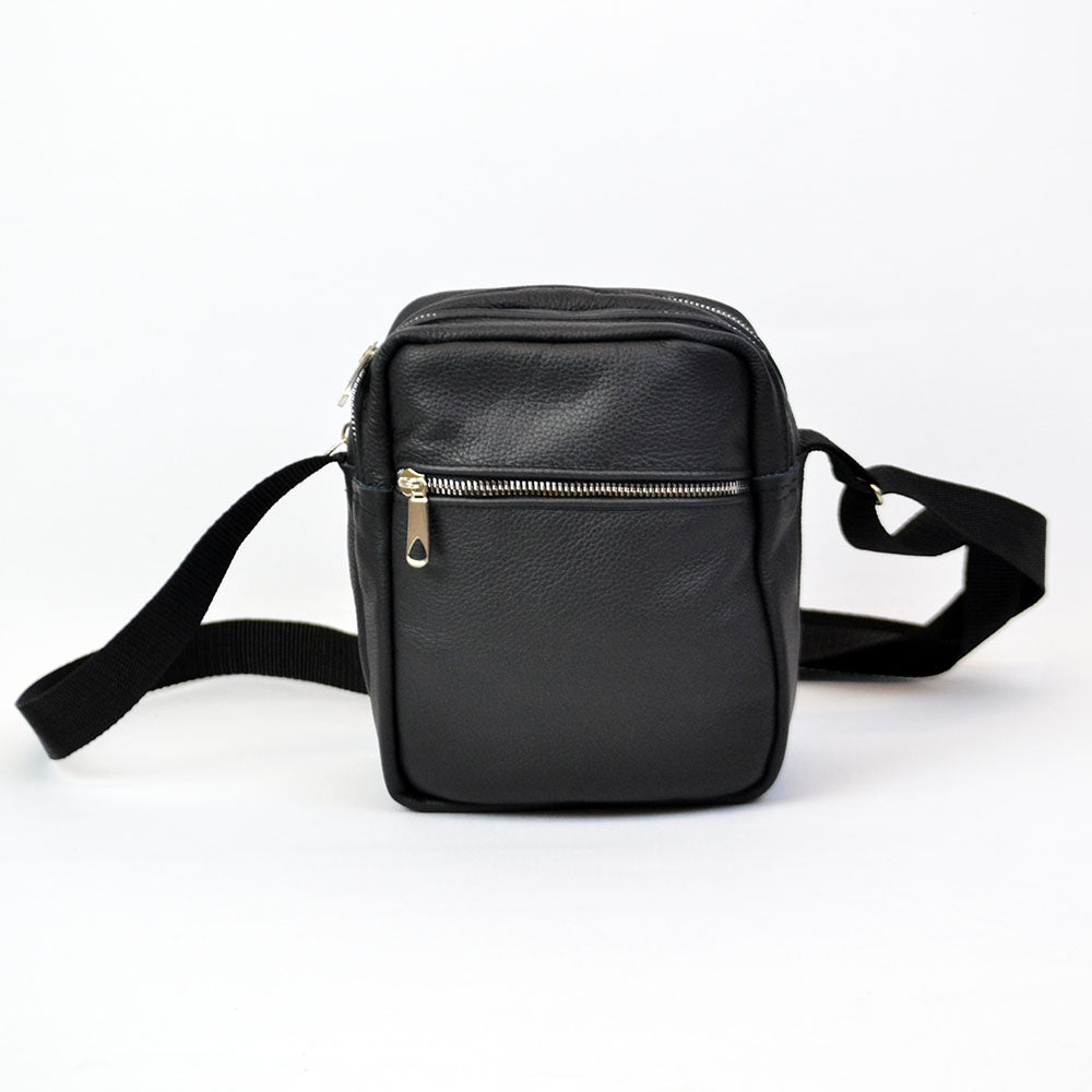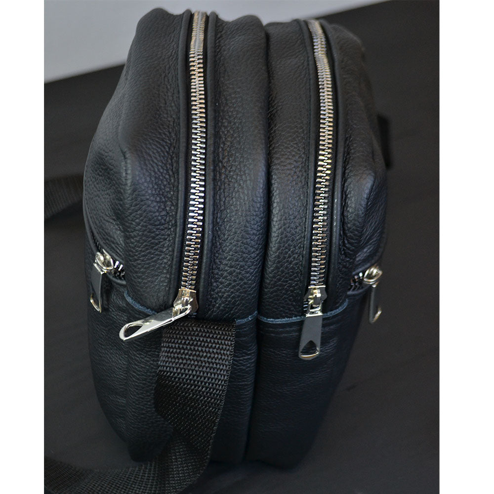 Качественная мужская сумка - мессенджер из натуральной кожи на 4 кармана с серебряной молнией