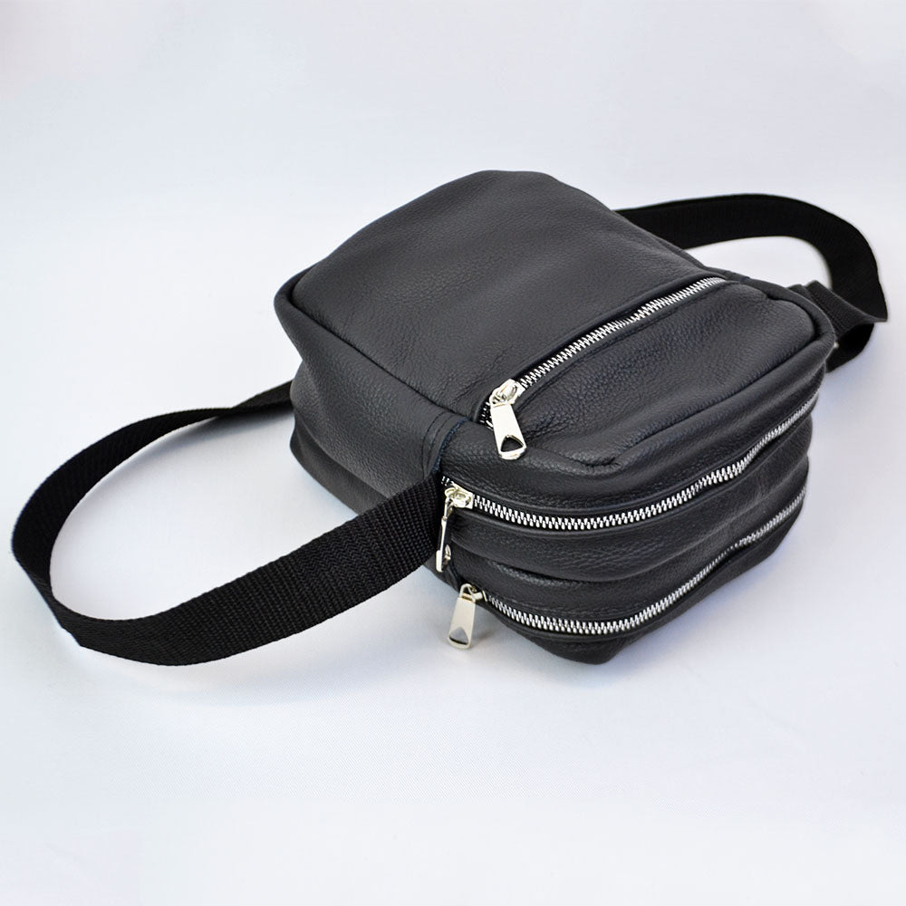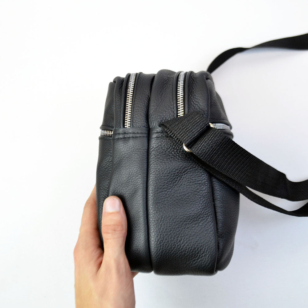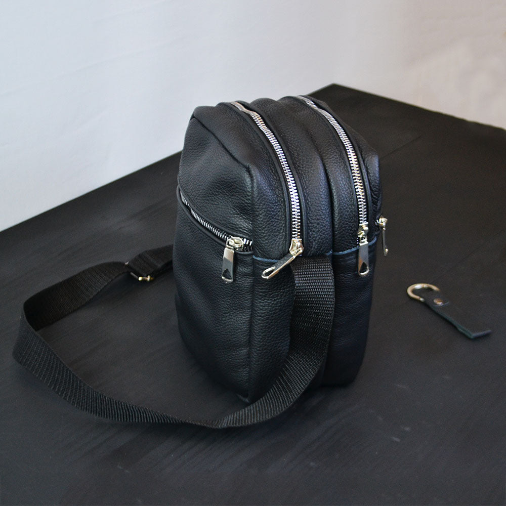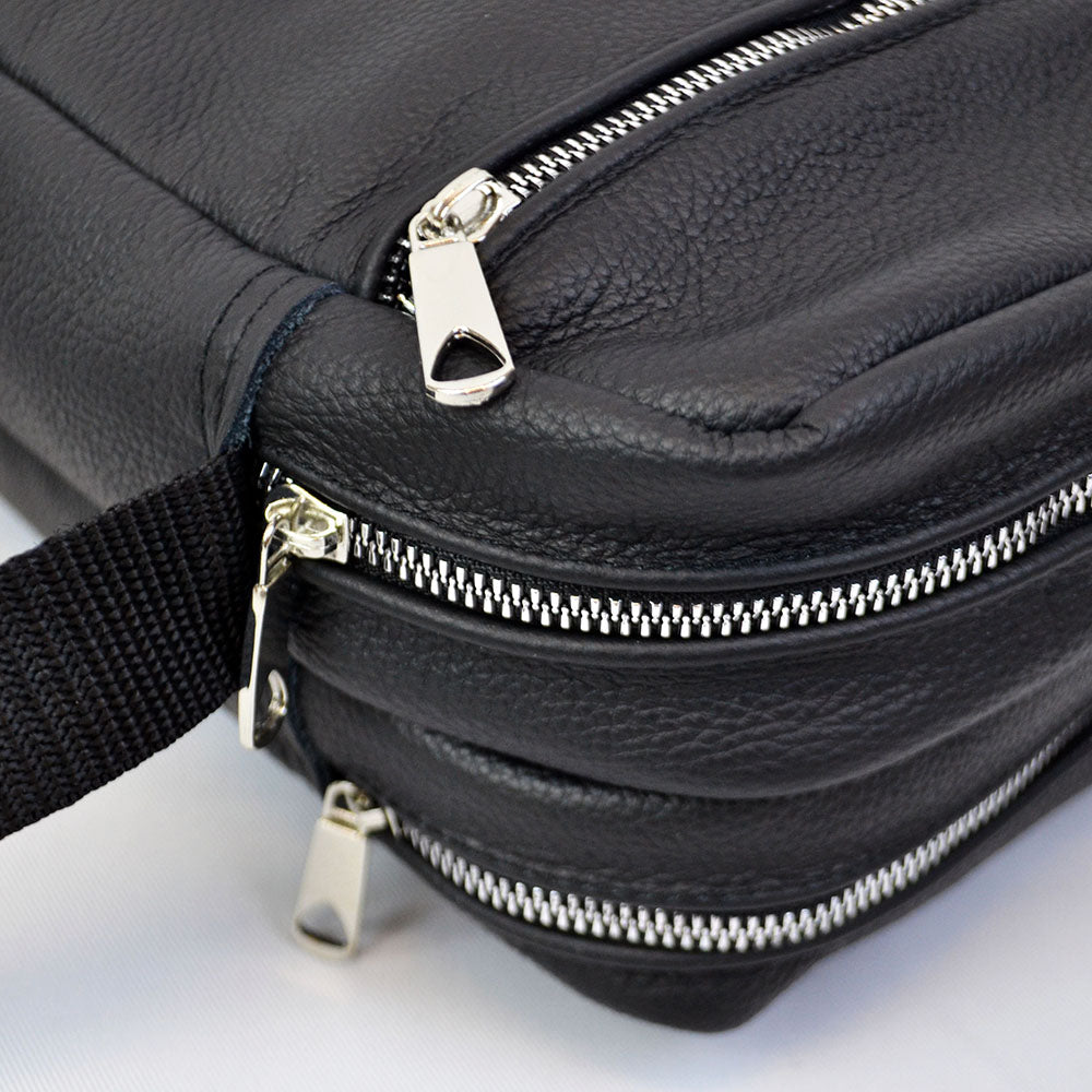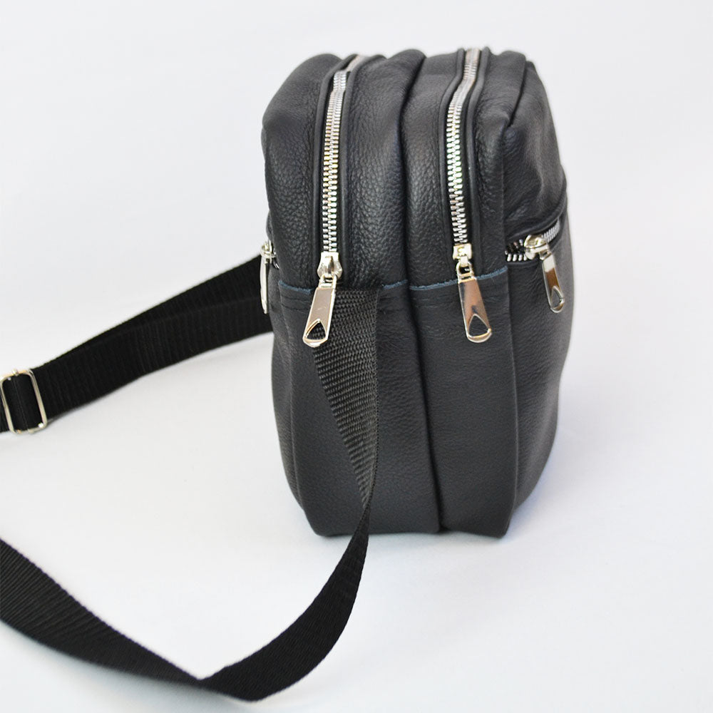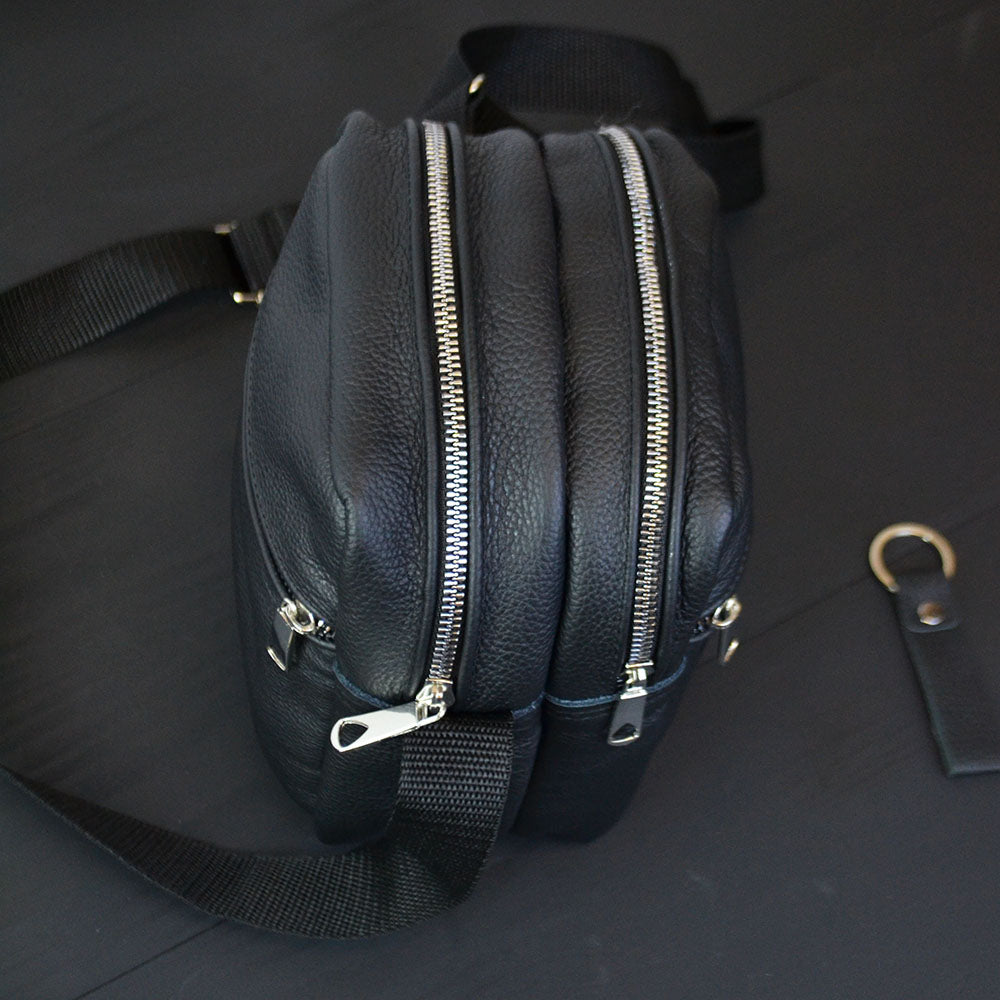 Качественная мужская сумка - мессенджер из натуральной кожи на 4 кармана с серебряной молнией