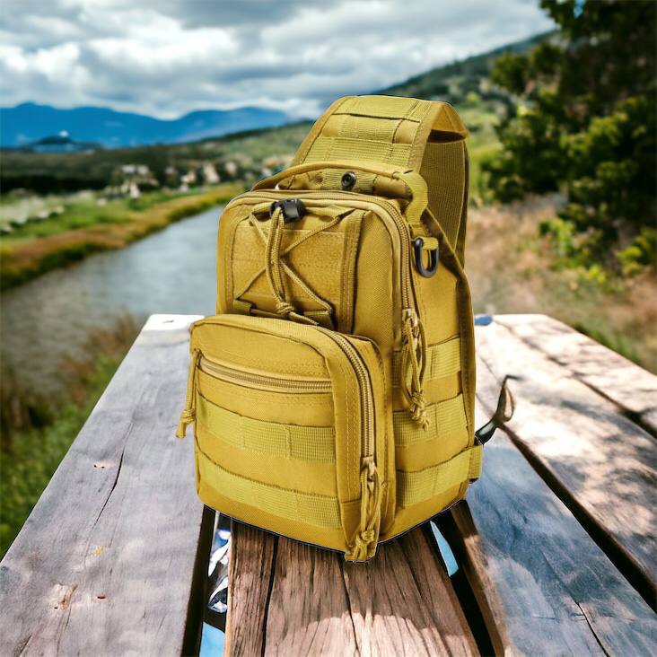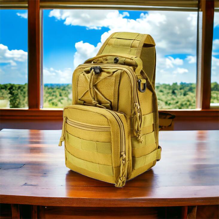 Качественная тактическая сумка, укрепленная мужская сумка рюкзак тактическая слинг. Цвет: койот