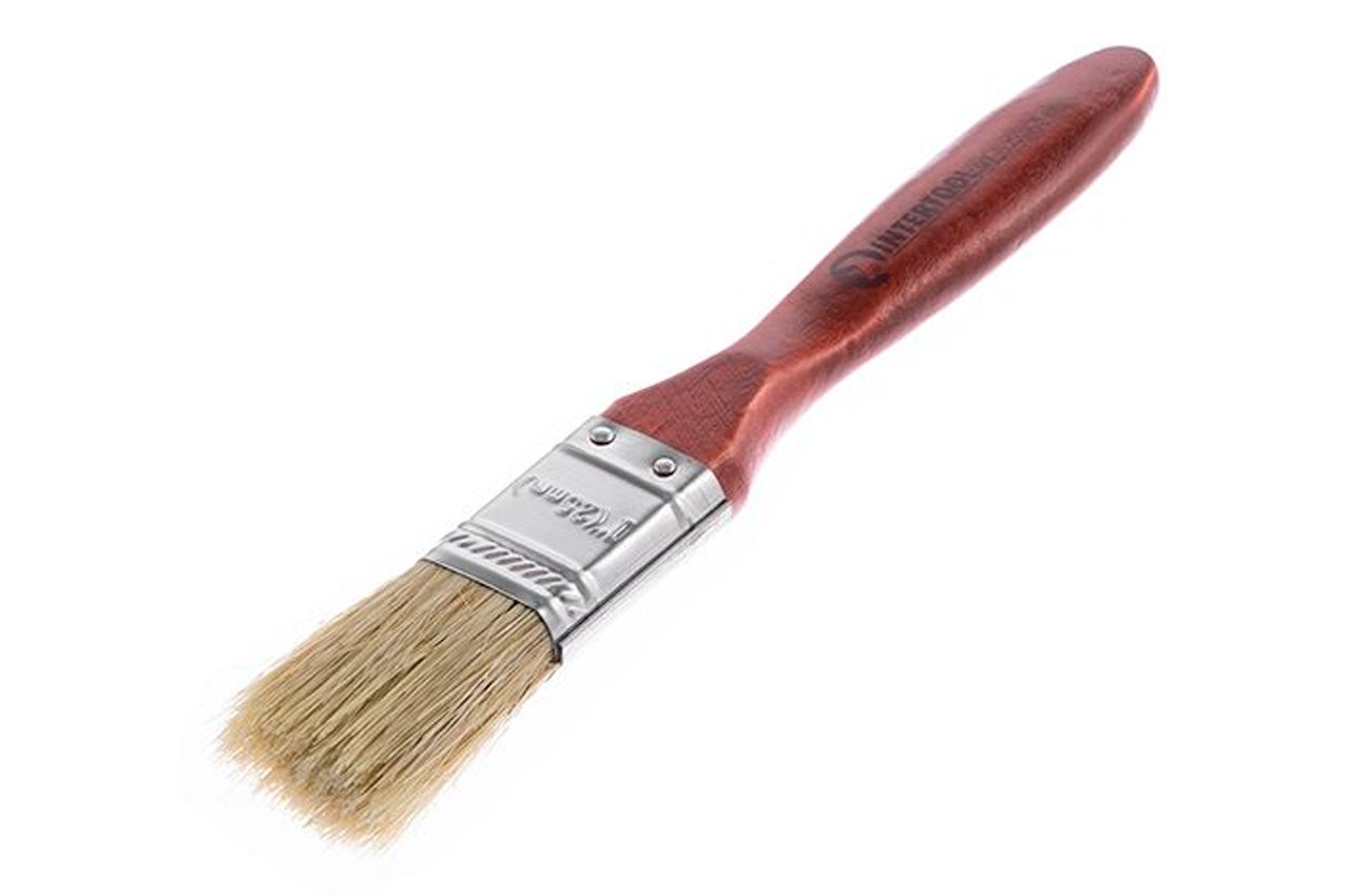 Кисть флейцевая KT-1025 предназначена для проведения малярных работ внутри и снаружи помещения; для разглаживания предварительно нанесенного лакокрасочного покрытия. Ворс кисти изготовлен из натуральной щетины, химически устойчив к различным агрессивным веществам. Качество проклейки и крепления рабочей части предупреждает "вытягивание" волосков, обеспечивает тонкие и аккуратные мазки и существенно сокращает расход материалов. Ширина кисти – 25 мм позволяет обрабатывать поверхности в труднодоступных местах. Толщина: 12 мм; Материал рукоятки: древесина
