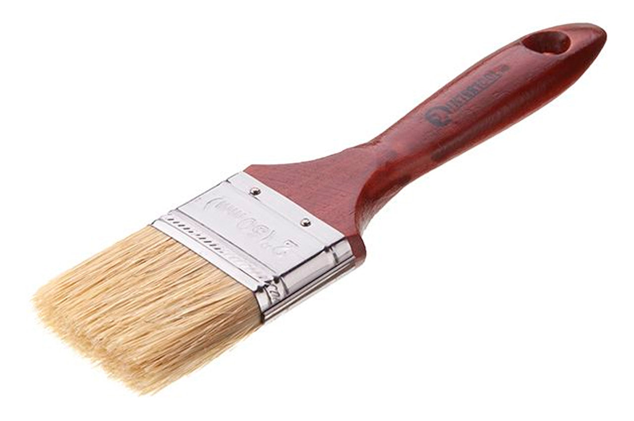 Кисть флейцевая предназначена для проведения малярных работ внутри и снаружи помещения; для разглаживания предварительно нанесенного лакокрасочного покрытия. Ширина рабочей части – 50 мм, толщина – 15 мм, длина – 44 мм, ворс изготовлен из натуральной щетины, химически устойчив к различным агрессивным веществам. Качество изготовления предупреждает "вытягивание" волосков, обеспечивает тонкие и аккуратные мазки и существенно сокращает расход материалов. Толщина: 15 мм; Материал рукоятки: древесина
