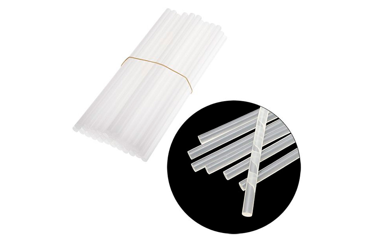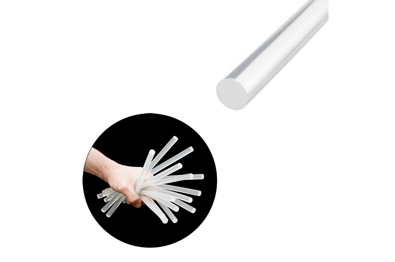 Комплект прозрачных клеевых стержней - расходный материал для клеевых пистолетов. Прозрачные клеевые стержни применяются для скрепления дерева, керамики, пластмасс, ткани, металлов и проводов, а также других материалов в разных сочетаниях. Стержни изготовлены из высококачественного сырья марки Dupont. Благодаря этому, полупрозрачный высоковязкий клей позволяет надежно скреплять перечисленные материалы, затвердевая по мере остывания. Температура размягчения: 85 °С; Время застывания: 30-40 сек; Температура текучести: 160-170 °С; Длина стержня: 300 мм; Диаметр стержня: 11.2 мм; Цвет: прозрачный; Вес упаковки: 1 кг