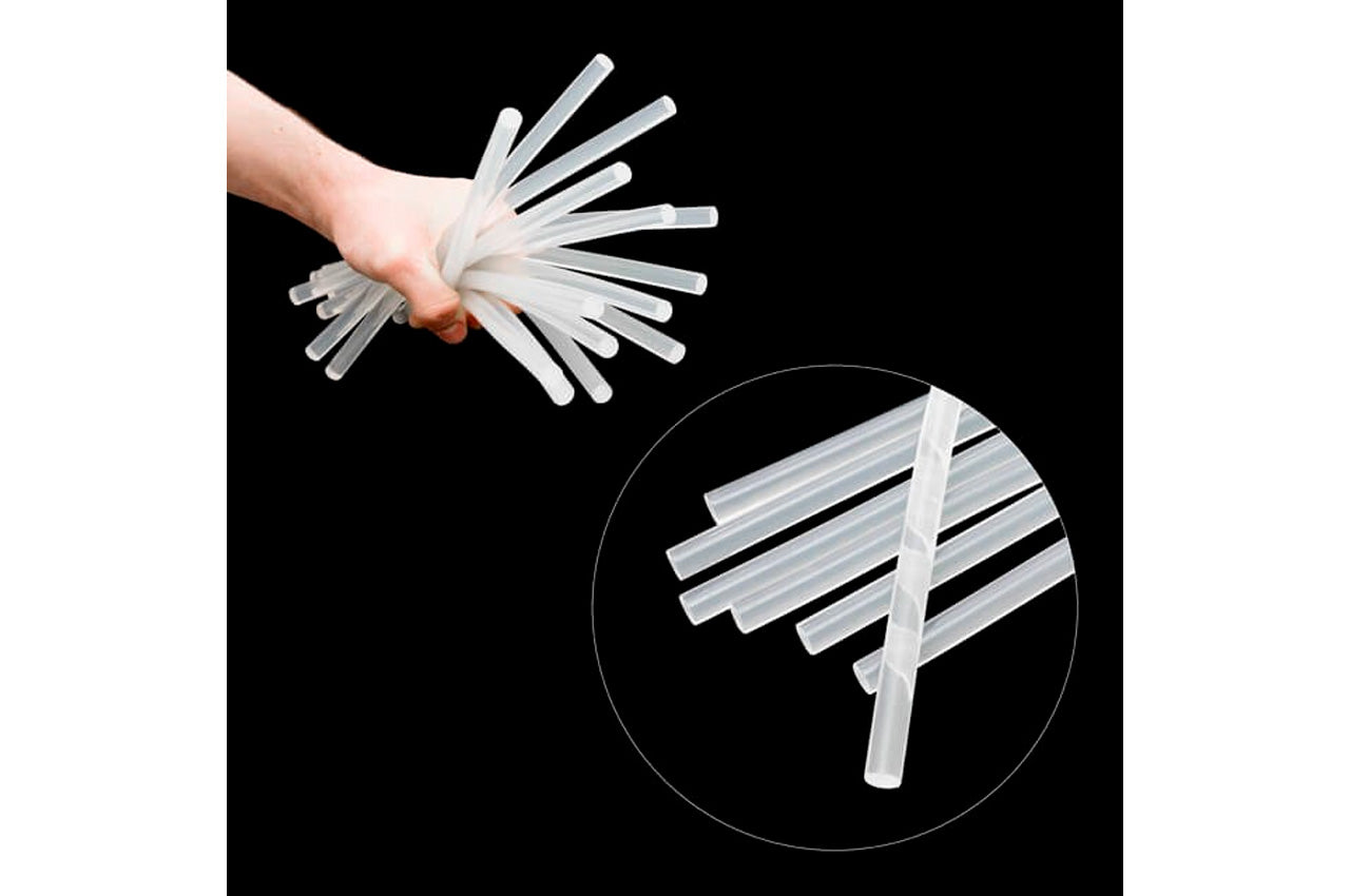 Комплект прозрачных клеевых стержней - расходный материал для клеевых пистолетов. Прозрачные клеевые стержни применяются для скрепления дерева, керамики, пластмасс, ткани, металлов и проводов, а также других материалов в разных сочетаниях. Стержни изготовлены из высококачественного сырья марки Dupont. Благодаря этому, полупрозрачный высоковязкий клей позволяет надежно скреплять перечисленные материалы, затвердевая по мере остывания. Температура размягчения: 85 °С; Время застывания: 30-40 сек; Температура текучести: 160-170 °С; Длина стержня: 300 мм; Диаметр стержня: 11.2 мм; Цвет: прозрачный; Вес упаковки: 1 кг