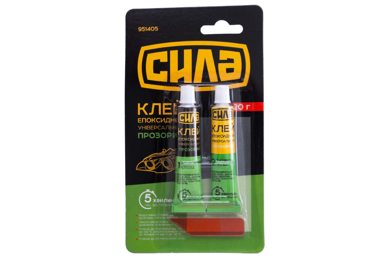 Клей эпоксидный Сила - 20г прозрачный. Клей двухкомпонентный эпоксидный является универсальным средством для надежного склеивания различных материалов из дерева, металла, керамики, фарфора.