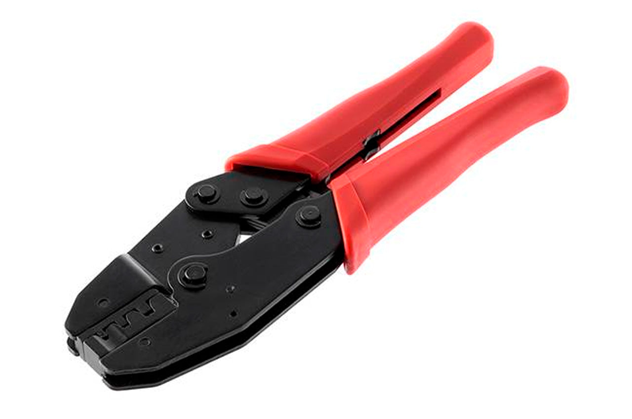 Клещи для обжима контактов с храповым механизмом или кримпер. Предназначены для работы с тремя типами неизолированных наконечников: Петлевой типа "О". Размер обжимных гнезд: 20-18 awg. Сечение: 0,5-1,5 мм Вилочный типа "U". Размер обжимных гнезд: 16-14 awg. Сечение: 1,0-2,5 мм Ножевой. Размер обжимных гнезд: 18-16 awg. Сечение: Сечение: 4,0-6,0 мм Диаметр зажимного отверстия: 0,5-6,0 мм