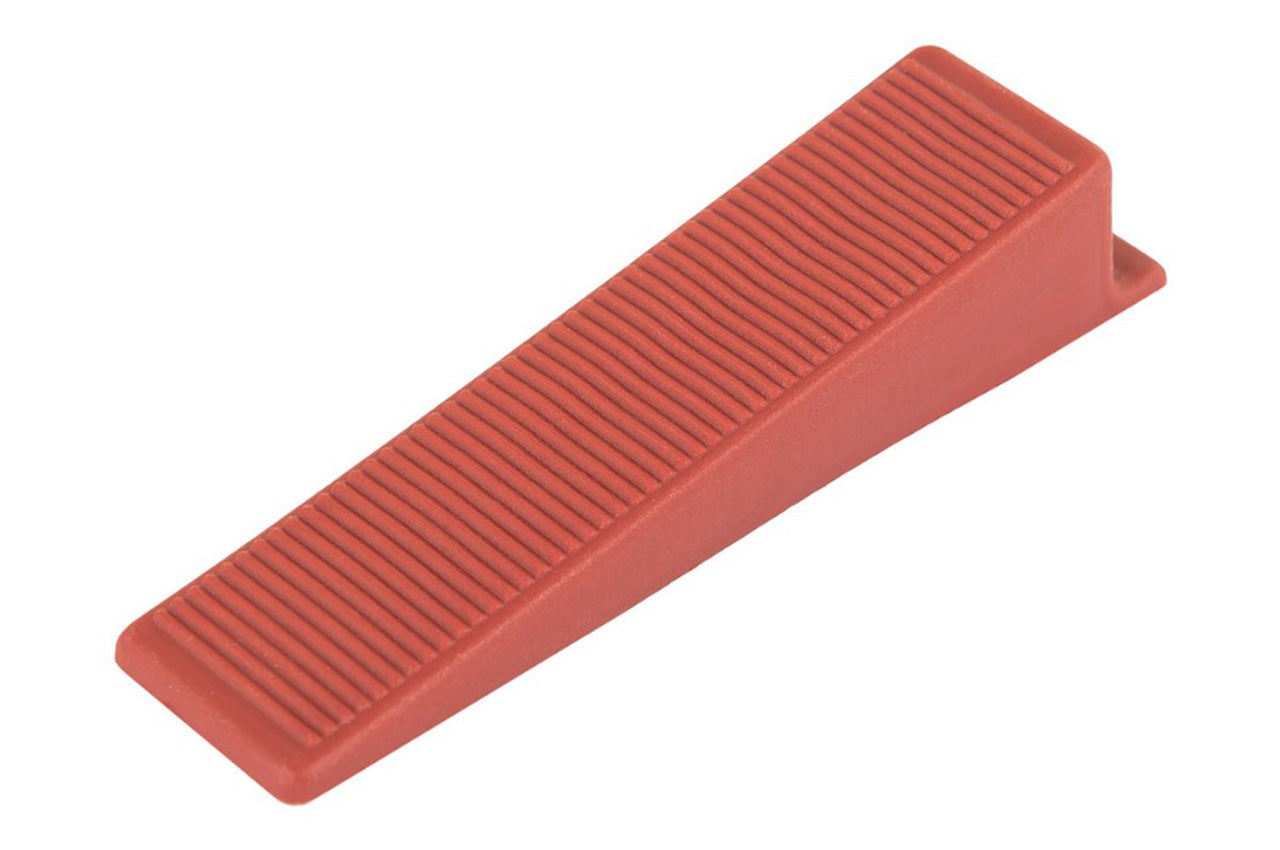 Клин для выравнивания полов Mastertool – это принадлежности для фиксации смежных плиток. В процессе работы клин плотно вгоняется в основание СВП вручную или специальным ключом, идеально выравнивая плоскость обеих плиток. Клин изготовлен из пластика, поэтому вероятность повреждения поверхности полностью исключена. На верхней части клина имеются зубчики, надежно фиксирующие его у основания.