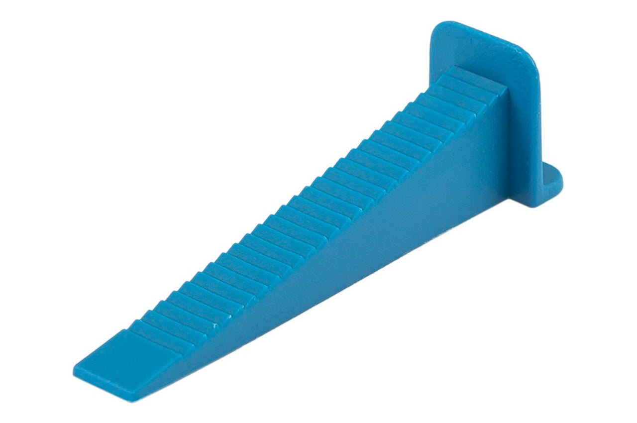 Клин для выравнивания полов Mastertool – это принадлежности для фиксации смежных плиток. В процессе работы клин плотно вгоняется в основание СВП вручную или специальным ключом, идеально выравнивая плоскость обеих плиток. Клин изготовлен из пластика, поэтому вероятность повреждения поверхности полностью исключена. На верхней части клина имеются зубчики, надежно фиксирующие его у основания.