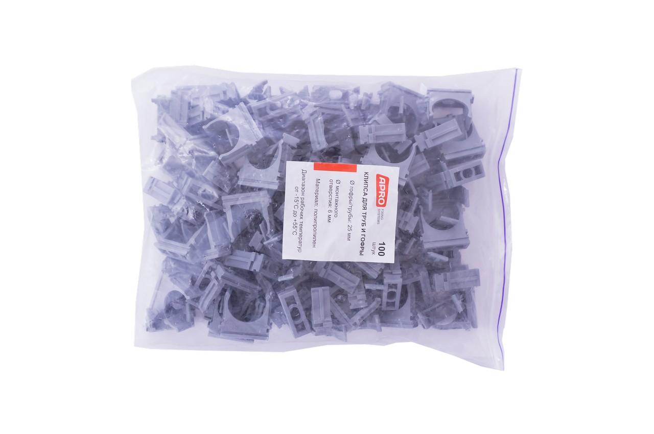 Клипса для гофры Apro - 25 мм серая (50 шт.)