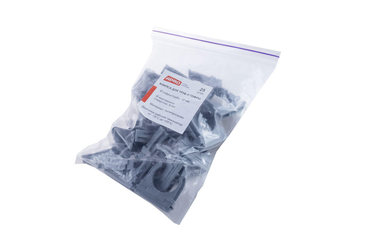 Клипса для гофры Apro - 32 мм серая (50 шт.)