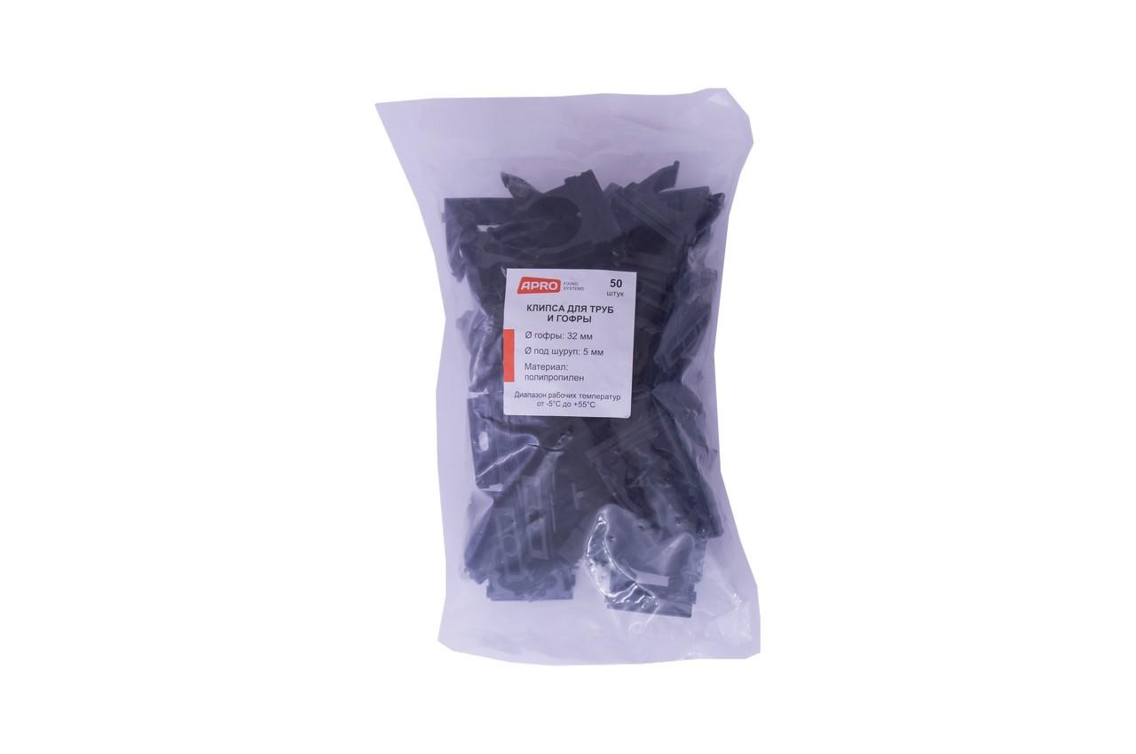 Клипса для гофры Apro - 32 мм черная (50 шт.)