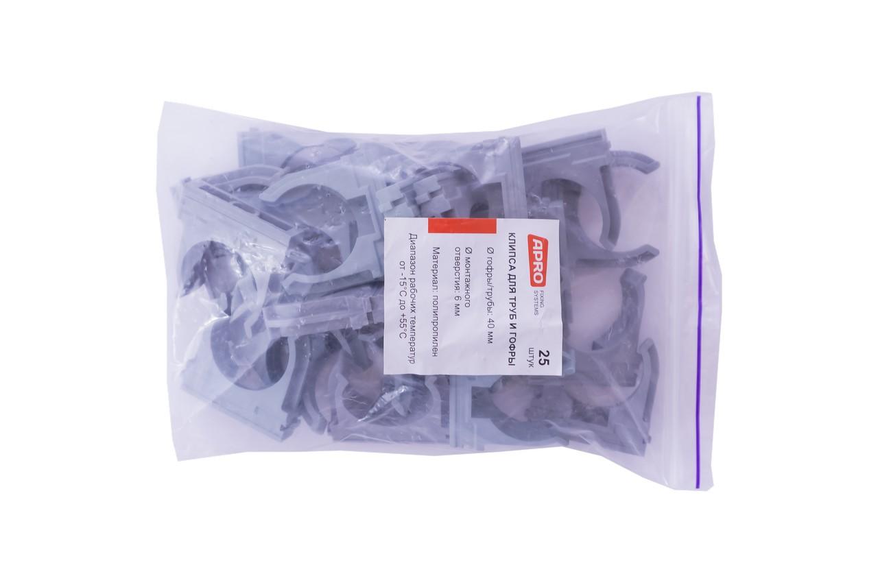 Клипса для гофры Apro - 40 мм серая (25 шт.)