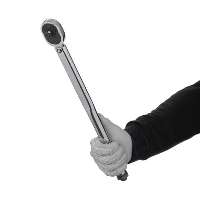 Ключ предназначен для затягивания крепежей с точно заданным усилием в диапазоне от 28 до 210 Нм. Высокая точность с погрешностью в +/- 4% позволяет уверенно закручивать разнообразные болты и гайки в соответствии с требованиями к крутящему моменту у производителя транспортного средства или оборудования. Это позволяет избежать появления перегруза, сломанных или плохо закрепленных деталей. Выполнен из высокопрочной Cr-V стали с присадками хрома и ванадия, обладает большой механической прочностью. Механизм трещотки ключа имеет плавный ход в 72 зубца, отличается высокой точностью с минимальным шагом в 5 градусов.