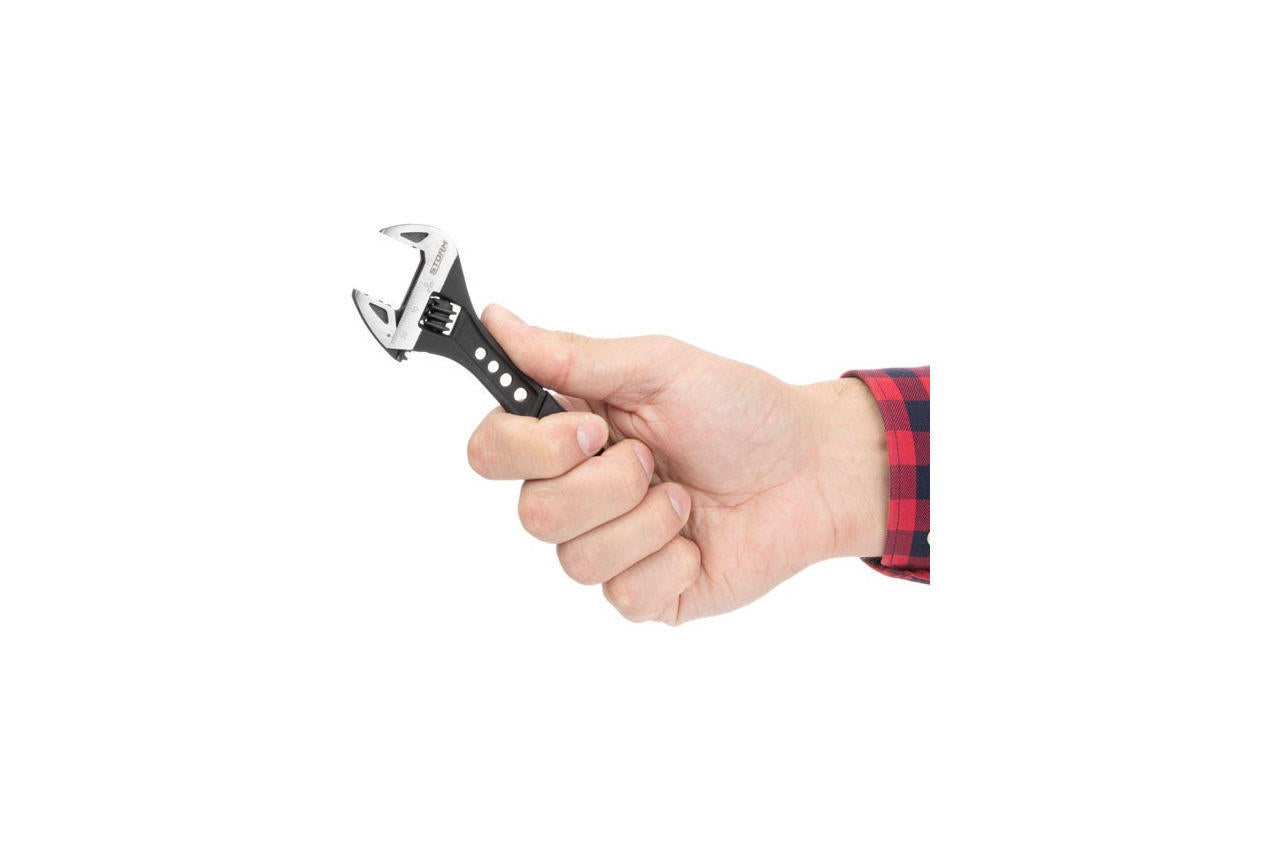 Разводной ключ STORM XT-0070 пригодится в любых слесарно-столярных работах. Благодаря высокому качеству изготовления, применяется в профессиональных сферах, где работы проводятся с постоянными высокими нагрузками. Также станет вашим надежным помощником в быту на долгие годы! Высокое качество изготовления Ключ обладает исключительной стойкостью к высоким нагрузкам - изготовлен из Cr-V стали, методом ковки. В составе стали присутствуют присадки хрома и ванадия, которые придают изделию высокую стойкость к износу. Такой ключ отличается долговечностью и не подвержен хрупкому разрушению. Твердость стали достигает показателя 50HRC. Антикоррозийное покрытие Фосфатное покрытие надежно защищает ключ от появления коррозии. Удобство в работе Угол отклонения головки составляет 22,5ᴼ, что обеспечивает комфортную работу. Выгравированная миллиметровая шкала не стирается со временем и позволяет быстро настроить нужный размер. Ключ компактный и легкий за счет геометрически круглой ручки. Рукоятка из TPR резины обеспечит надежный захват даже промасленными и грязными руками. Защита крепежа Функция защиты гаек на губках сохранит грани крепежа, исключив проскальзывания. Длина ключа: 150 мм; Материал рукоятки: TPR резина; Максимальное расстояние между губками: 24 мм
