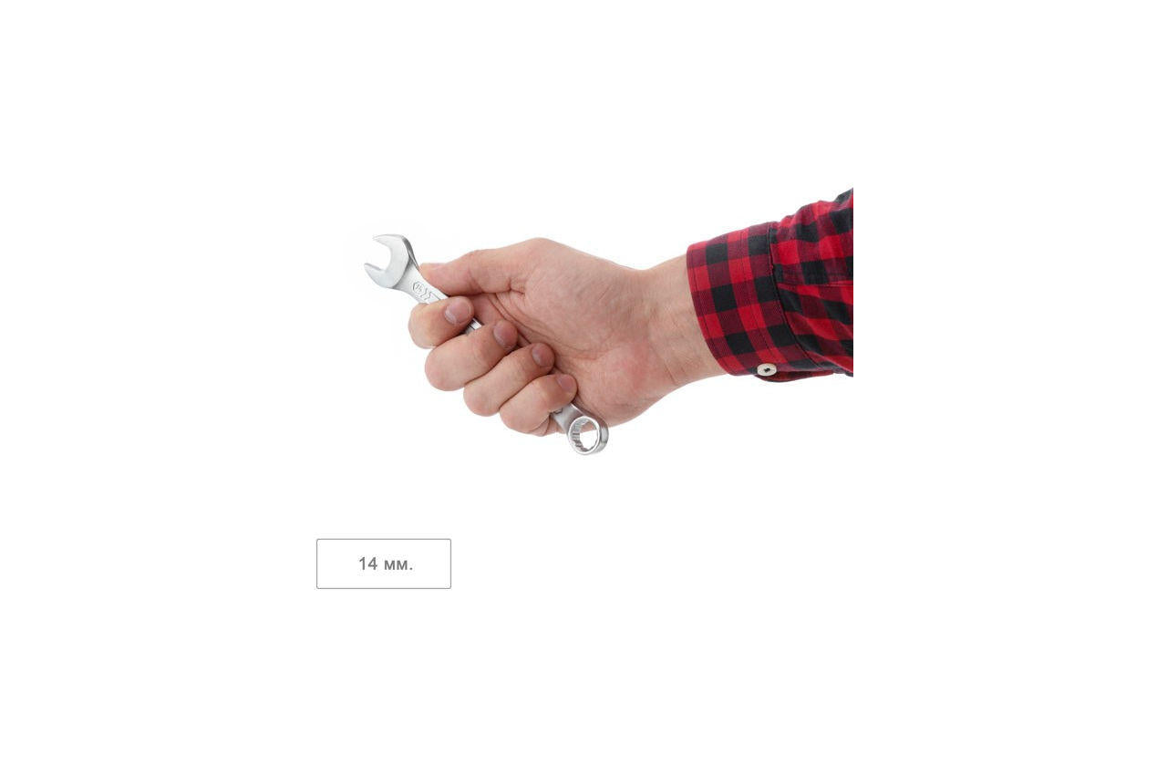 Комбинированный рожково-накидной ключ, размером 14 мм – это неотъемлемый инструмент для выполнения различных задач на откручивание, закручивание крепежей. Широко используется во всех сферах от бытового применения до профессионального, благодаря высоким эксплуатационным характеристикам. Ключ изготовлен из прочной Cr-V стали, методом холодной штамповки, что гарантирует исключительную износостойкость и долговечность. Отлично выдерживает постоянные нагрузки и обладает высокой антикоррозийной стойкостью благодаря трехслойному покрытию. Поверхность ключа также матирована сатин-хромом для надежного захвата в работу даже испачканными в масле руками. Вы можете быть уверены в качестве ключа, ведь его подтверждает пожизненная гарантия! Особенности: Сверхпрочная, износостойкая Cr-V сталь, не подвержена деформациям. Ключ соответствует европейскому стандарту качества DIN3113. Удобный в работе - форма и изгиб рукоятки ключа с оптимальным рычагом для приложения усилия. Размер ключа: 14 мм; Покрытие: сатин-хром