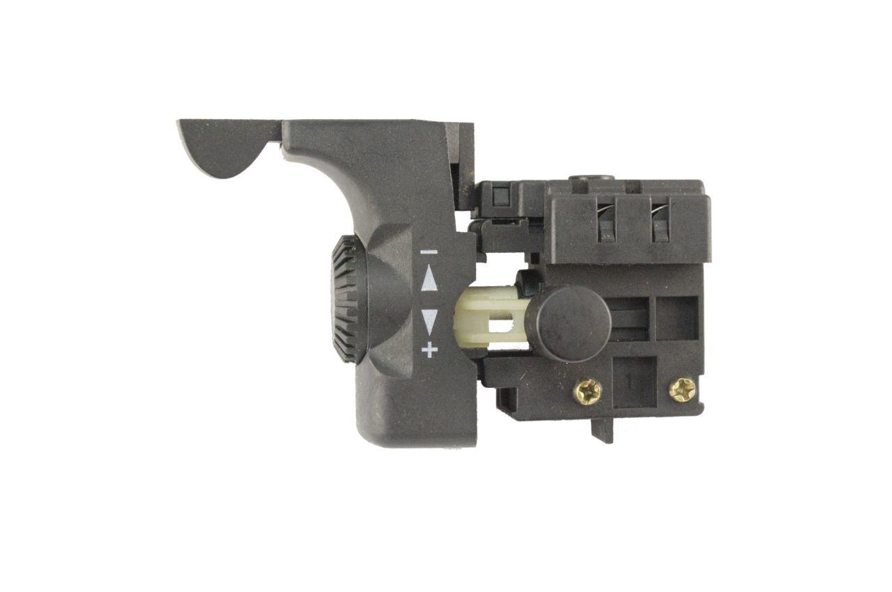 Переключатель реверса. Электронная регулировка оборотов от нажатия на педаль включателя или колесом регулятора. Боковая кнопка фиксатор для длительного включения. Крепление сетевых проводов - винтами, остальные - быстрозажимными фиксаторами.