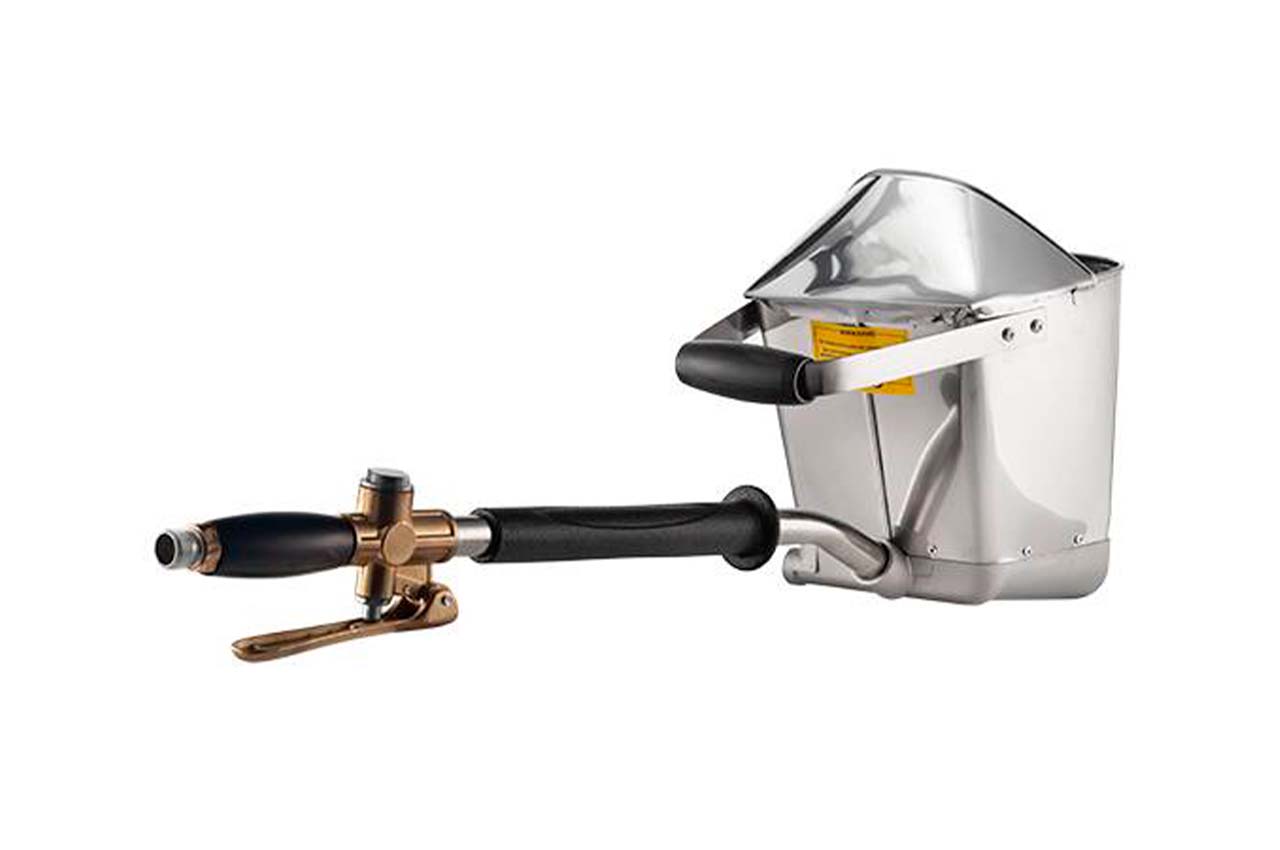 Удлиненная основная ручка хоппера позволяет штукатурить потолки и пристальные зоны на невысоких участках без применения стремянки и опор.