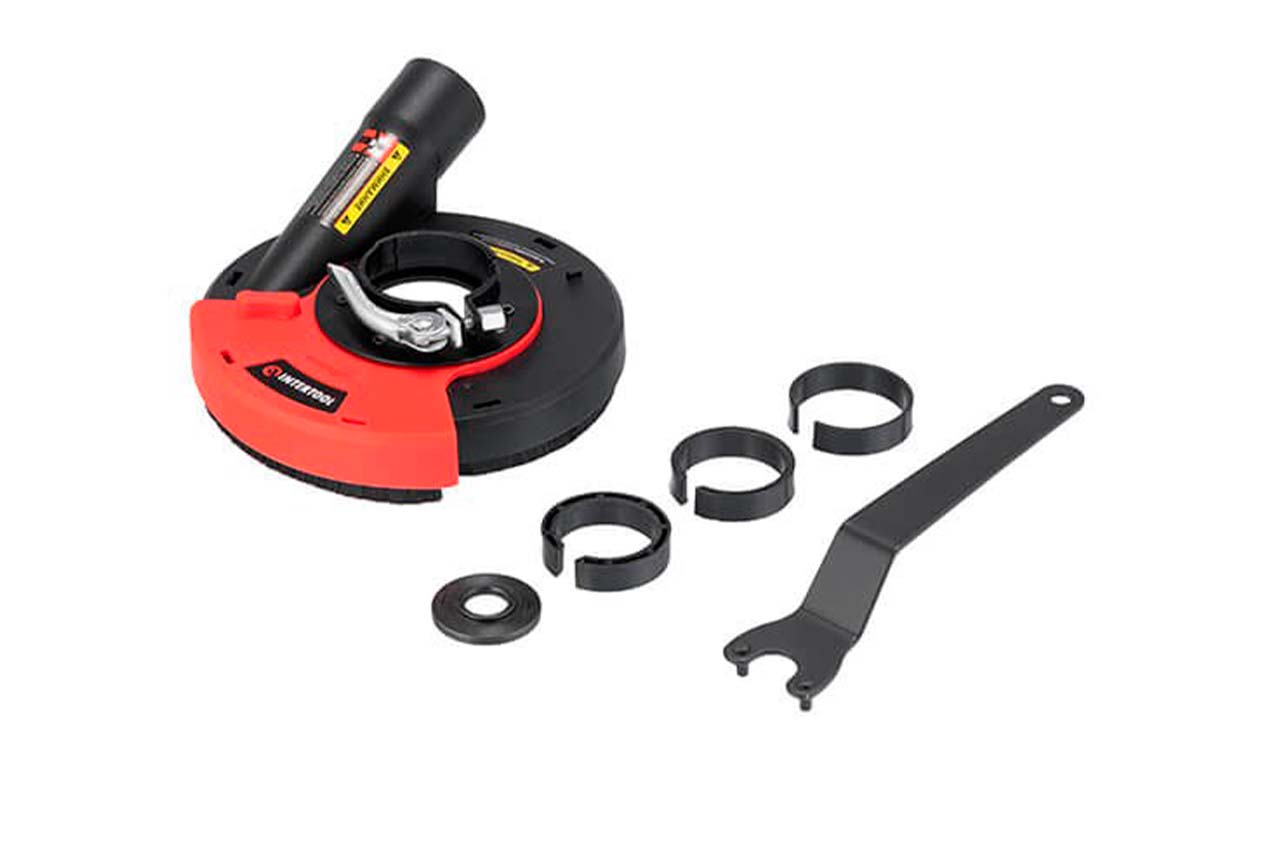 Кожух подходит для установки на угловые шлифмашины с дисками 125 мм, т.к. в комплекте поставляется набор колец-переходников под разные посадочные диаметры. Также в комплекте есть ключ для прижимной гайки и опорный фланец.