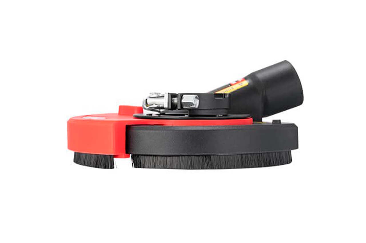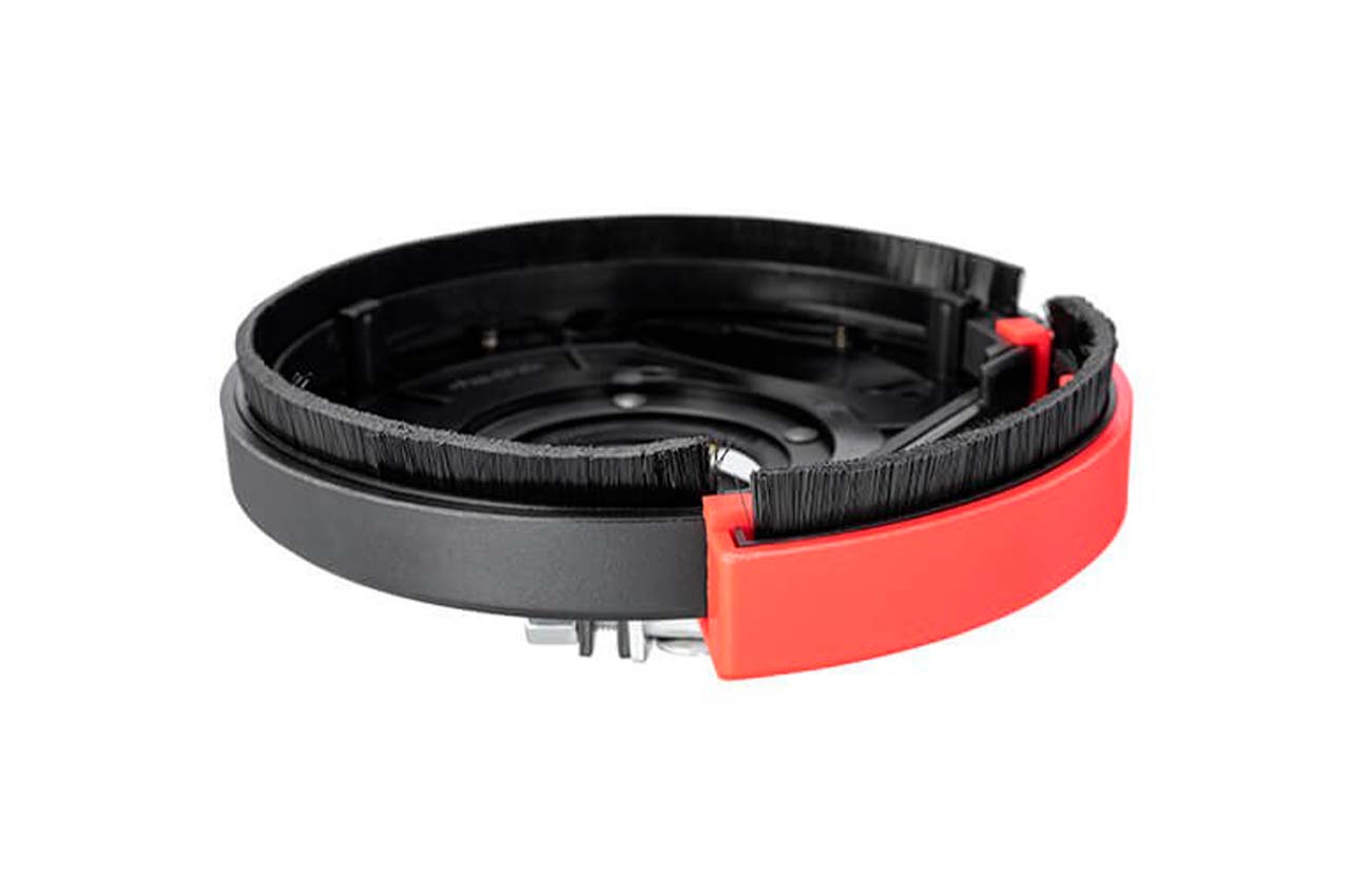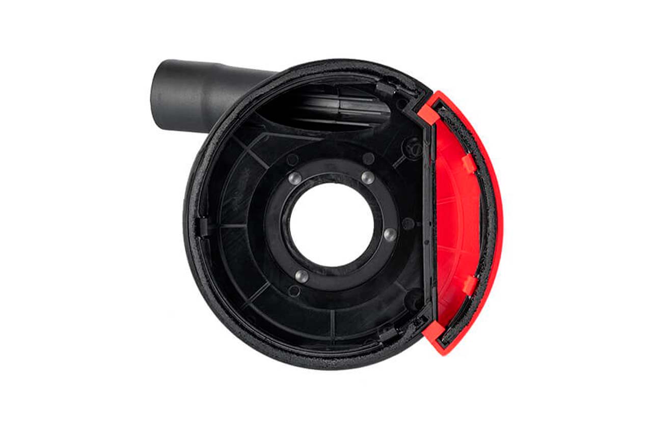 Кожух с пыле отводом ST-0004 предназначен для эффективного отвода пыли из рабочей зоны при обработке поверхностей торцевыми или чашечными фрезами. Есть возможность подключения к пылесосу или пыле сборному мешку. Кожух изготовлен из антистатического ABS-пластика, который значительно снижает количество налипающей на него пыли. Подпружиненный нейлоновый ворс в месте контакта с поверхностью точно повторяет все неровности, минимизируя выбросы пыли наружу. По периметру кожуха расположены отверстия. Во время работы затягиваемый через них воздух создает турбулентный поток, который максимально быстро выводит пыль в патрубок пылеотвода, а также дополнительно охлаждает фрезу, продлевая срок ее службы.