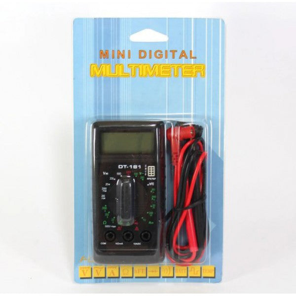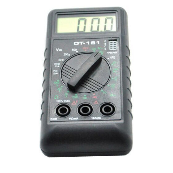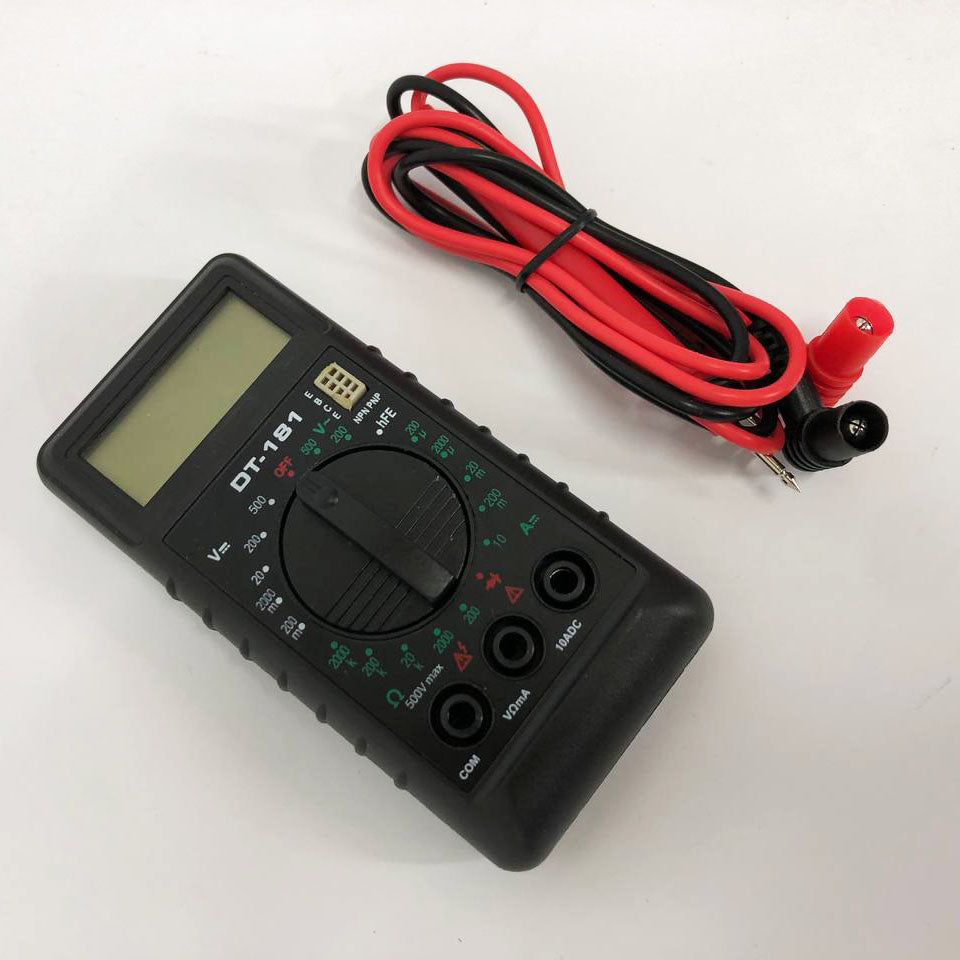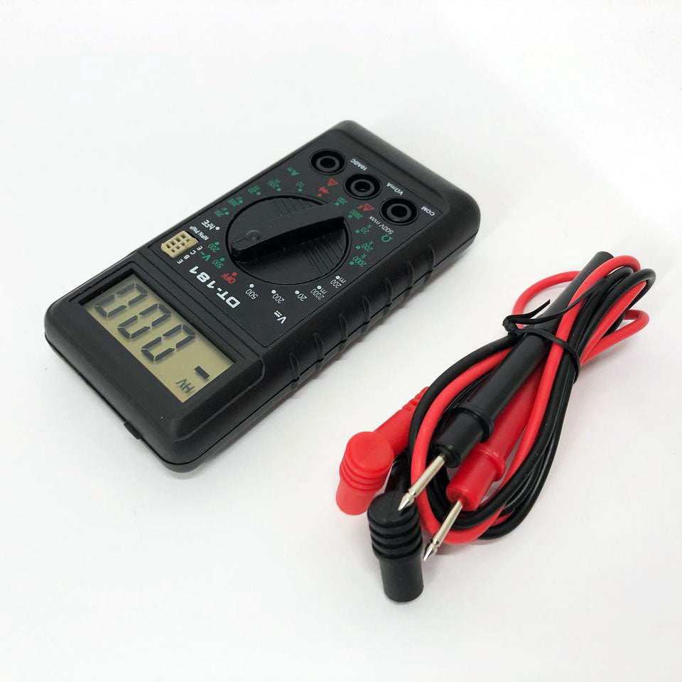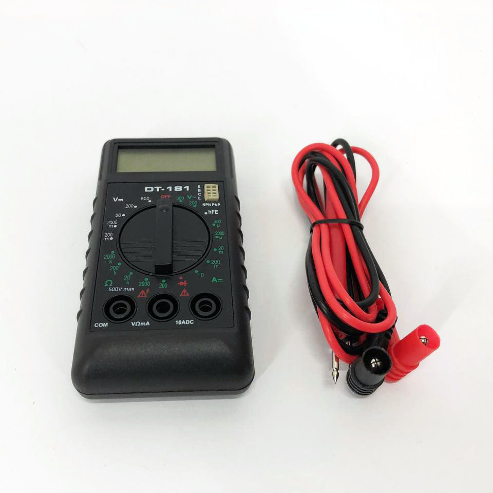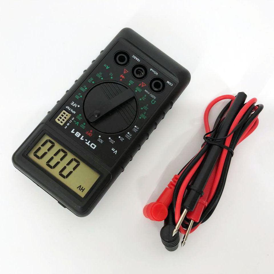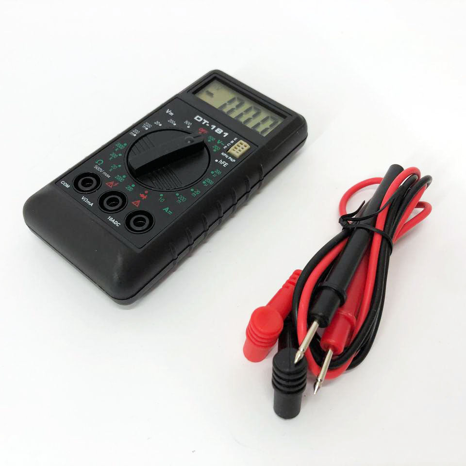 Цифровой мультиметр DT-181 имеет очень компактные размеры и небольшой вес, это удобный прибор для того, чтобы носить его с собой на случай, если вдруг понадобиться измерять ток, напряжение, сопротивление, протестировать диоды, измерить ёмкость транзисторов или произвести звуковую прозвонку соединений. Метод измерений данного мультиметра – АЦП двойного интегрирования. Тестер имеет множество дополнительных полезных функций – автоматически определяет единицу измерений и полярность, воспроизводит индикацию перегрузки. Аппарат обладает высокой скоростью измерений, он способен на 3 измерения в секунду. Также производитель гарантирует высокую точность результатов измерений, если прибор использовать согласно инструкции.