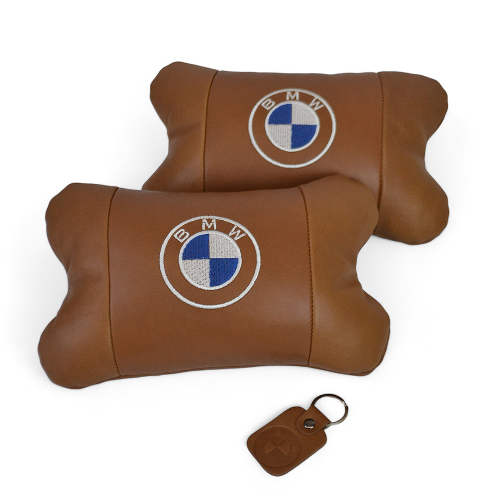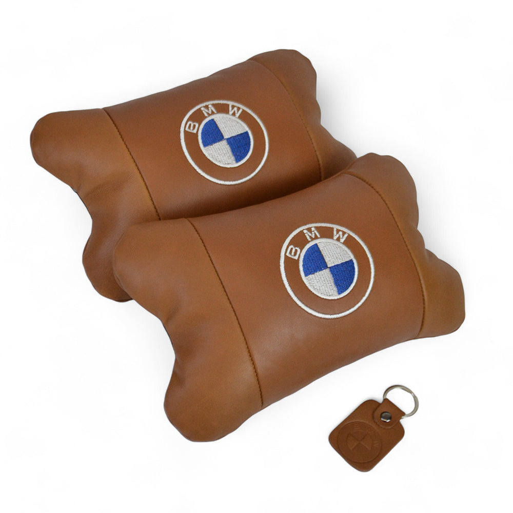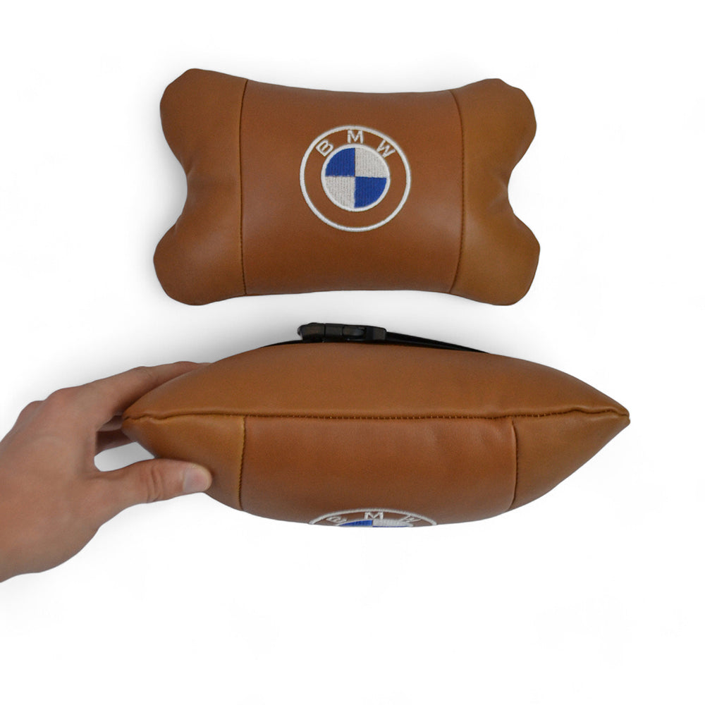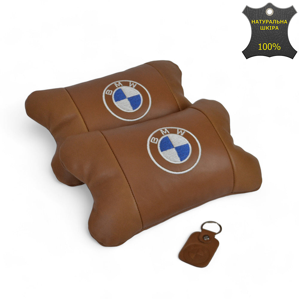 Комплект автоподушек 2шт из натуральной коричневой кожи для BMW. Ортопедическая подушка в авто БМВ