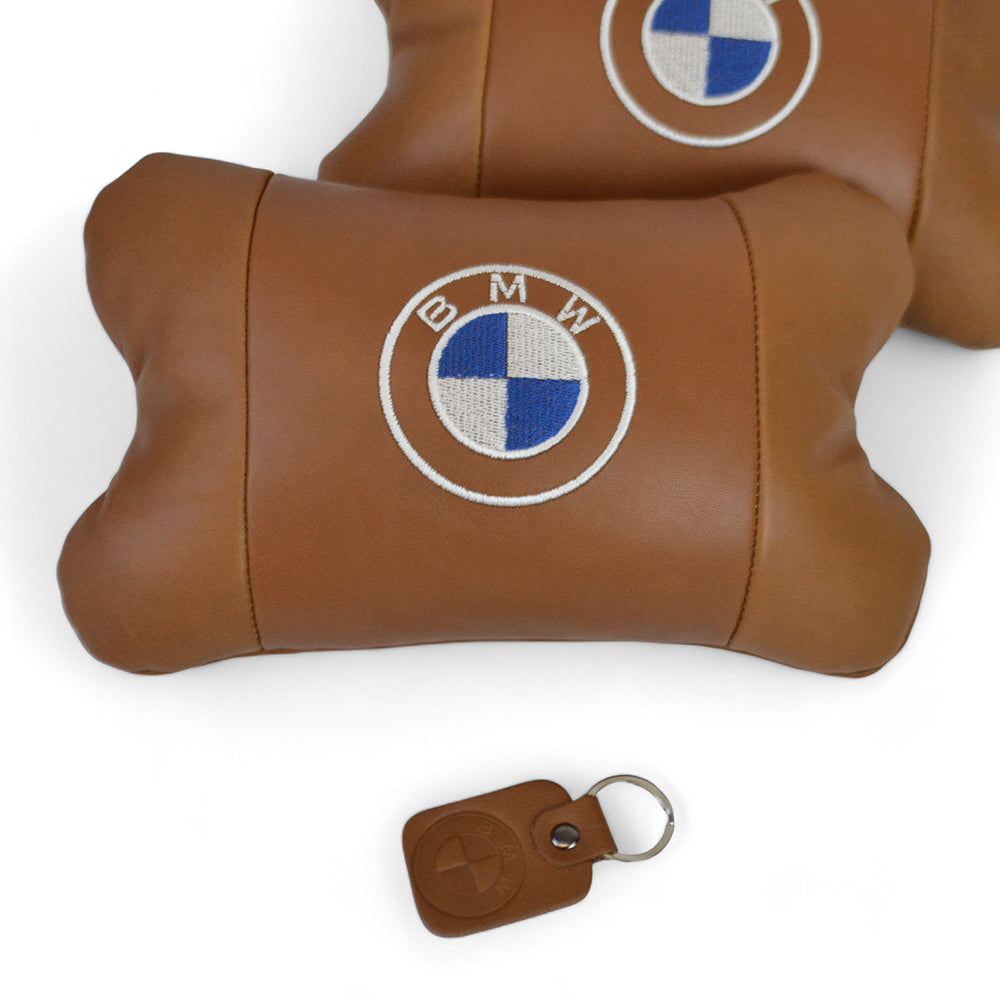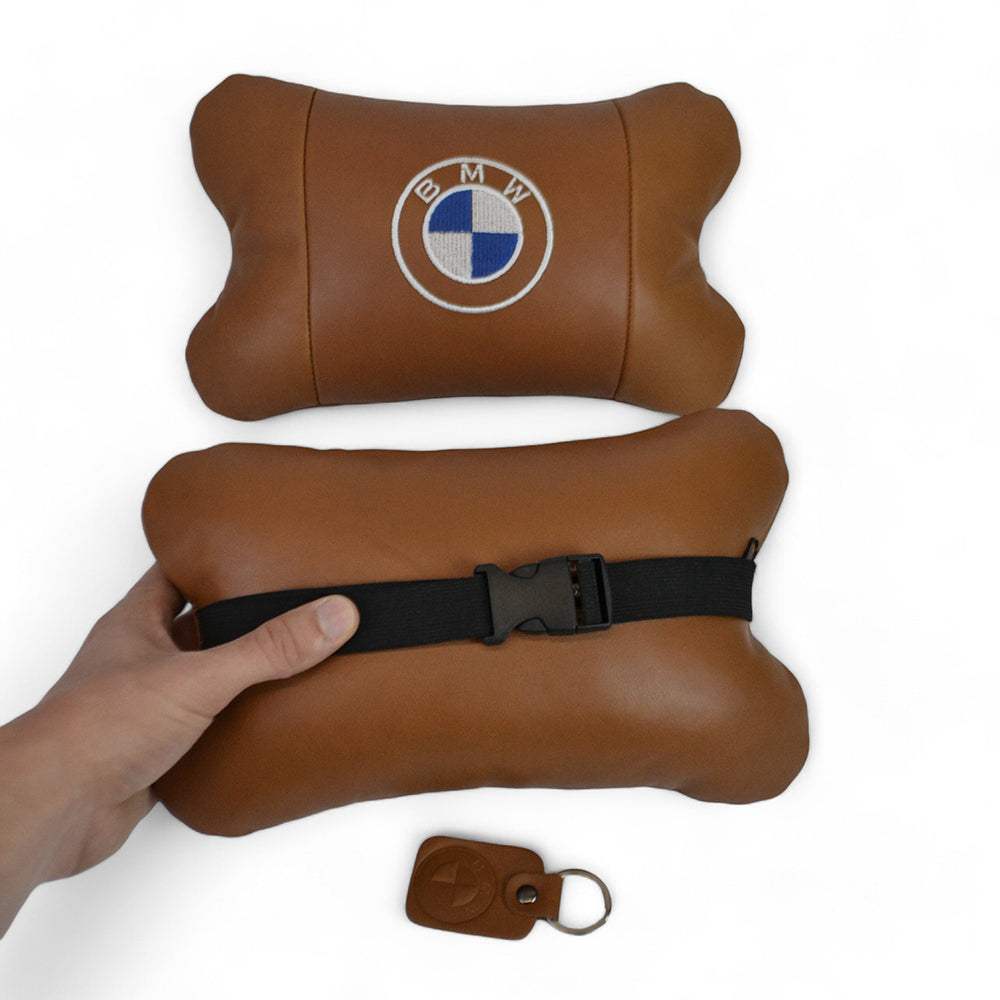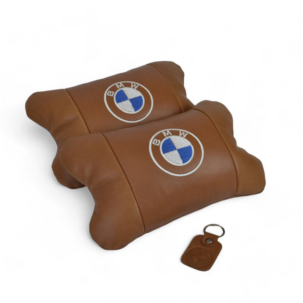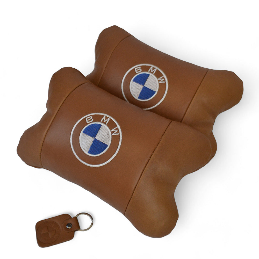 Комплект автоподушек 2шт из натуральной коричневой кожи для BMW. Ортопедическая подушка в авто БМВ