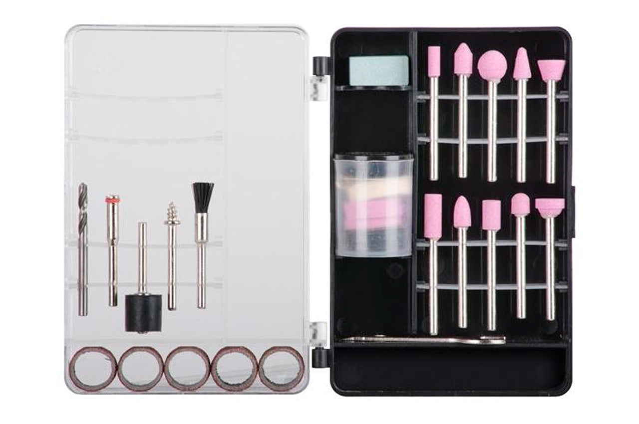 Комплект аксессуаров для гравера содержит в себе базовый набор насадок для гравера для выполнения разнообразных задач. Все насадки оснащены хвостовиком Ø 3,2 мм. Диаметр оси: 3,2 мм; Количество единиц в наборе: 42
