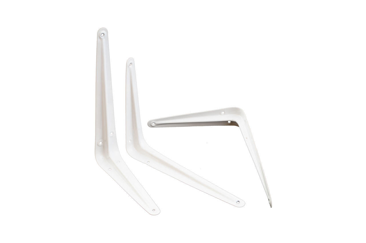 Консоль металлическая предназначена для крепления полок к вертикальной поверхности. Цвет: белый.