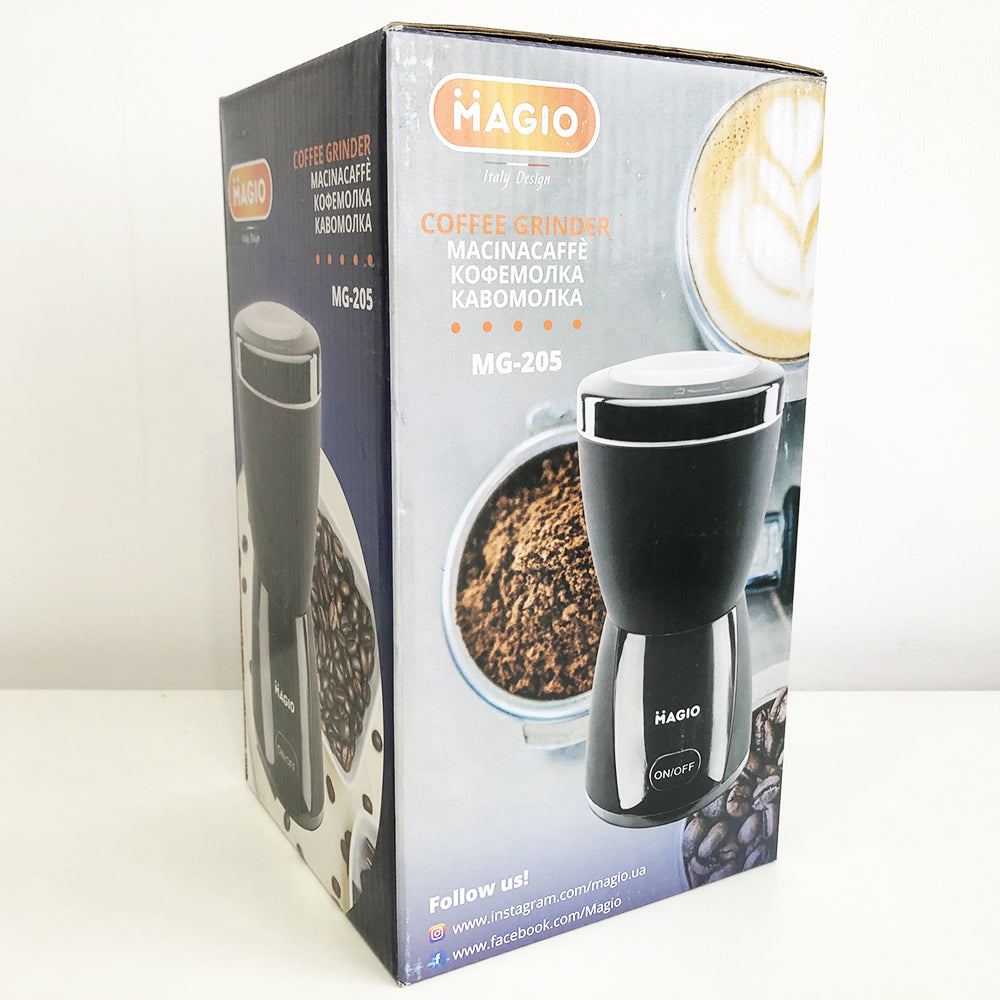 Кофемолка Magio МG-205 это незаменимое устройство на любой кухне, особенно для любителей кофе. Неоспоримым фактом является то, что кофейные зерна лучше сохраняют свой вкус в цельном состоянии, ну а для заваривания напитка нужны молотые зерна. Для того, чтобы всегда иметь возможность наслаждаться кофе из свежеcмолотых зерен.