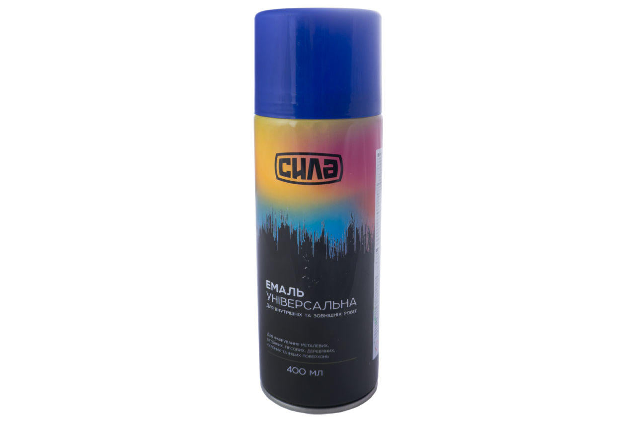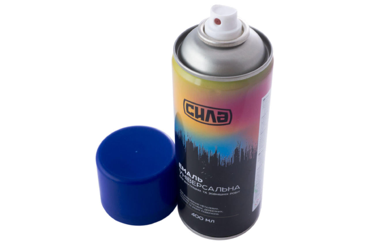 Краска аэрозольная Сила - 400 мл RAL 5002 синяя для покраски металлических, бетонных, гипсовых, деревянных, стеклянных и других поверхностей. Удобна для работы с трафаретами.