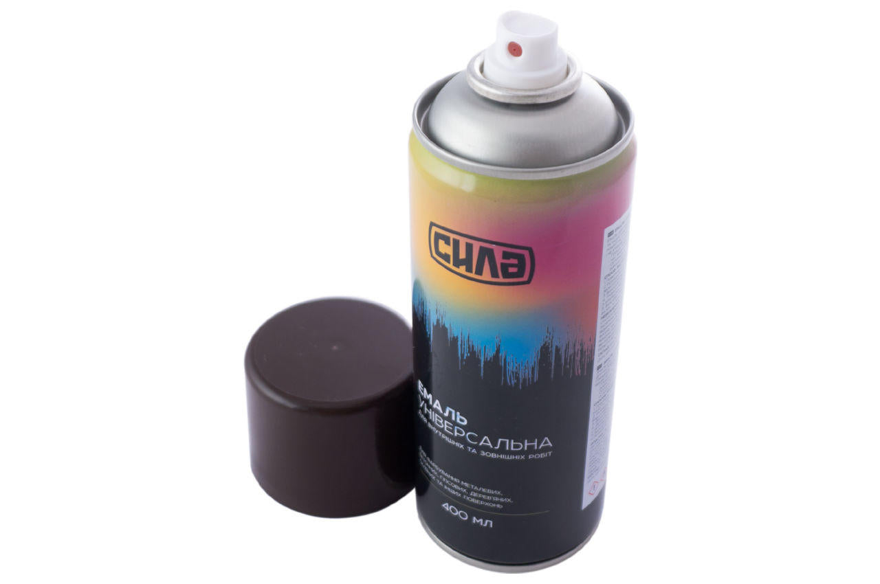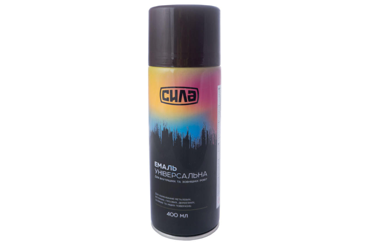 Краска аэрозольная Сила - 400 мл RAL 8017 коричневая для покраски металлических, бетонных, гипсовых, деревянных, стеклянных и других поверхностей. Удобна для работы с трафаретами.