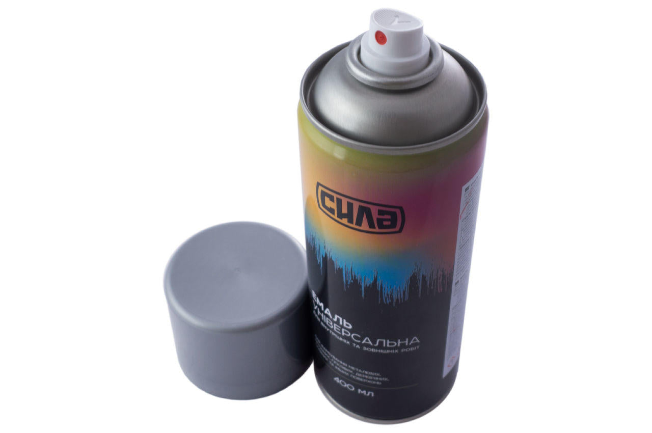 Краска аэрозольная Сила - 400 мл RAL 9006 серебристая для покраски металлических, бетонных, гипсовых, деревянных, стеклянных и других поверхностей. Удобна для работы с трафаретами.
