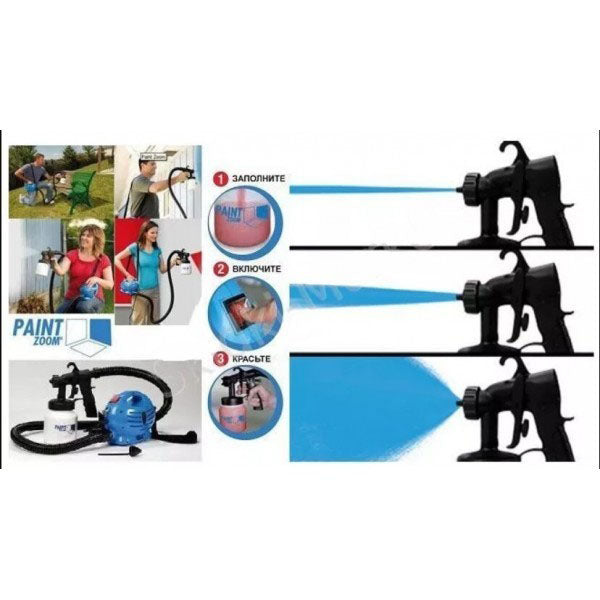 Не надо застилать газетами всё вокруг, так как пистолет прибора имеет 3 режима распыления, что дает возможность вам красить точно. Для того, что бы насладиться всеми его преимуществами, необходимо им пользоваться. Всего лишь раз использовав Paint Zoom (Пейнт Зум), вы забудете о всех сложностях покраски и будете смотреть на это как на развлечение. Приобретайте Paint Zoom (Пейнт Зум) и вы не пожалеете.