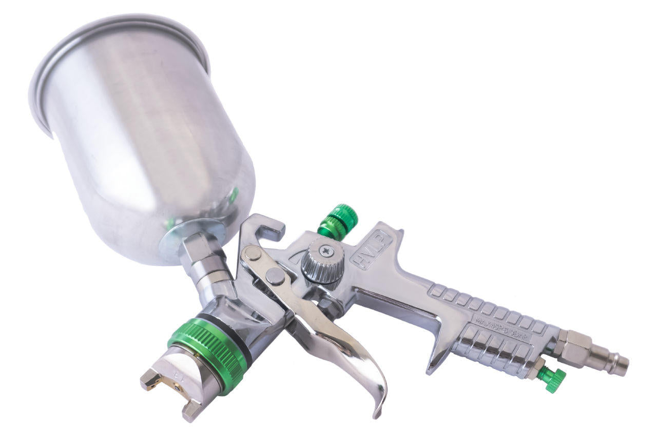 Технология распыления HVLP алюминиевый верхний бачок 600 см3 форсунка 1,3 мм рабочее давление 3,0 - 4,0 bar производительность компрессора 150 - 220 л / мин диаметр круглого факела 30 - 50 мм ширина плоского факела 160 - 240 мм регулятор подачи ЛКМ регулятор формы факела регулятор подачи воздуха переходник 1/4 '' - быстросъемное соединение.