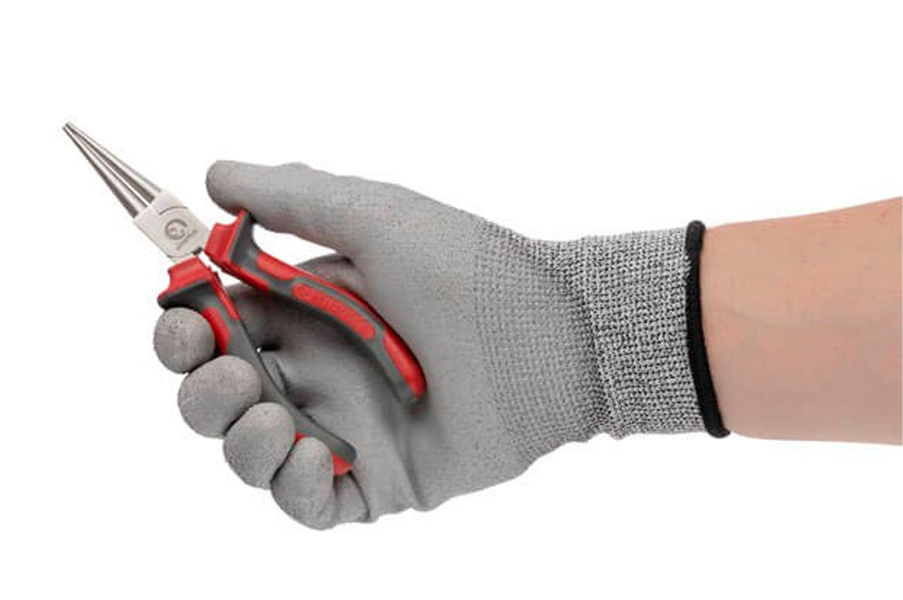 Круглогубцы HT-0128 предназначены для захвата и фигурного скручивания проволоки, небольших пластин из листового металла и пр. Отлично подходят для тонких работ – с их помощью аккуратно работают с металлическими жилами или тоненькими прутками, а также делают равномерный изгиб. Особенности Прочная и износостойкая сталь изготовления С55 с твердостью 45-55 HRC. Отсутствие люфтов в конструкции. Удобные рукоятки, не скользят в руке и обеспечивают полный контроль инструмента в работе. Длина губок 50 мм, общая длина – 160 мм. Инструмент изготовлен из прочной стали С55, обладающей повышенной твердостью. Такая сталь часто применяется для изготовления зубчатых колес, деталей муфт сцепления и прочих трущихся элементов, работающих под нагрузкой. Покрытие Satin Finished повышает коррозионную стойкость круглогубцев. Удобные ручки с двухкомпонентным покрытием и легкий вес позволяют комфортно работать круглогубцами длительное время. Продуманная форма инструмента и эргономика обезопасит вас от защемления пальцев. Твердость по шкале Роквелла: 55 HRC; Покрытие: Satin Finished