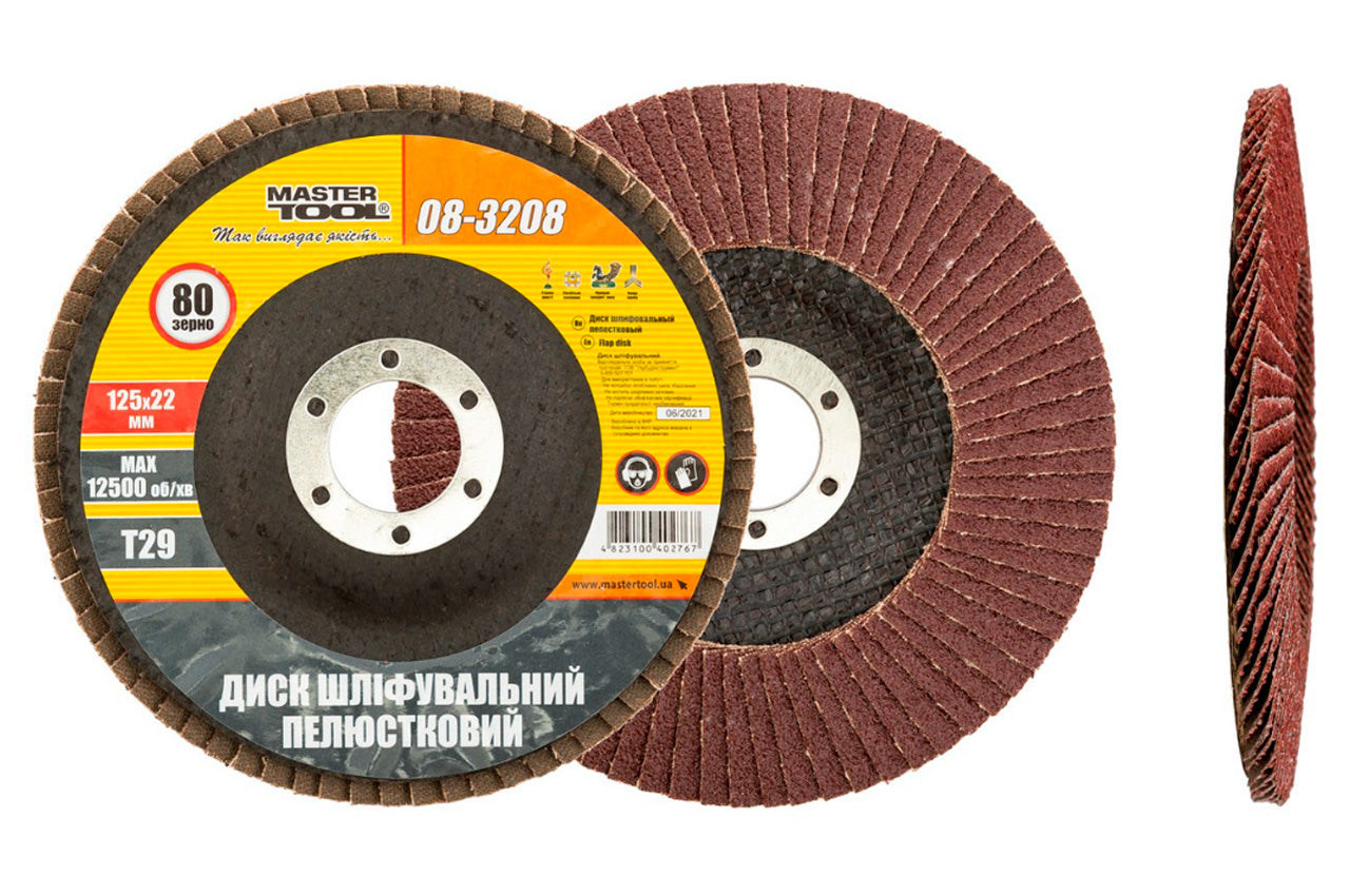Круг лепестковый торцевой Mastertool - 125 мм x Р80 изогнутый
