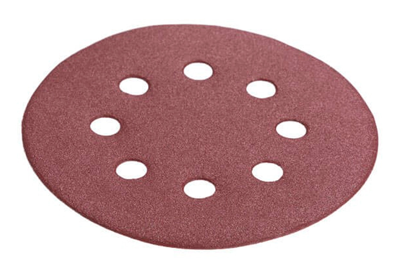 Круг наждачный самоклеющийся с отверстиями применяется для работ с шлифмашинами, в частности с эксцентриковыми шлифмашинками. Используется для зачистки и финишной обработки различных поверхностей: дерева, металла, камня, пластмассы, стекла и др. Подходит также для обработки краски, лака, шпатлевки, пластика. Круги с зернистостью от 150 до 600 для финальной шлифовки и полировки под покраску. Используемые материалы: основа - бумага класса С, плотность 140 г/кв.м².; шлифовальное зерно - оксид алюминия; соединитель - фенольная смола; материал сцепления - велюр; полуоткрытая насыпка.