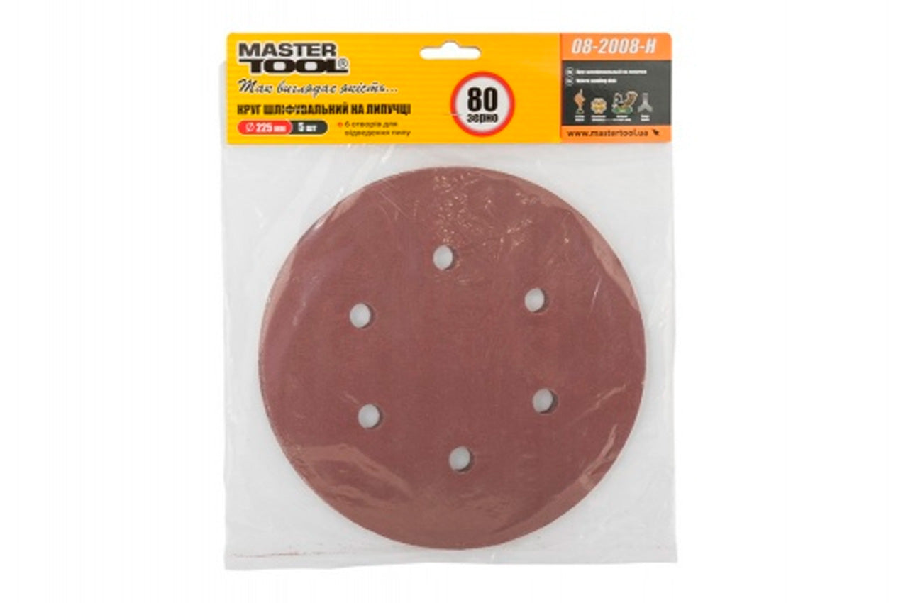 Круг шлифовальный на липучке Mastertool - 225 мм x Р80 с отверстиями (5 шт.)