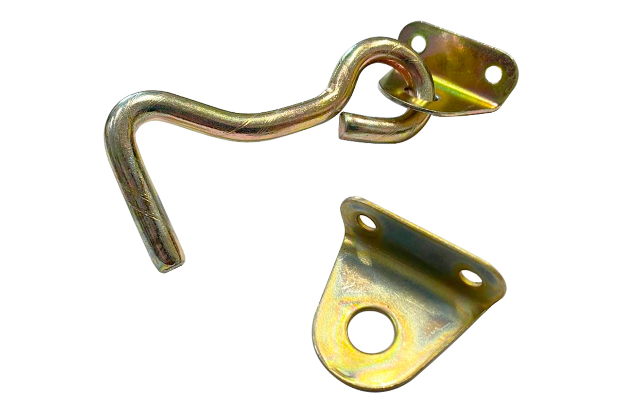 Крючок дверной KS-UKR - это простое и надёжное решение для фиксации дверей, ставней, калиток или других конструкций в закрытом положении. Изготовлен из оцинкованного металла, что обеспечивает устойчивость к коррозии и длительный срок службы.