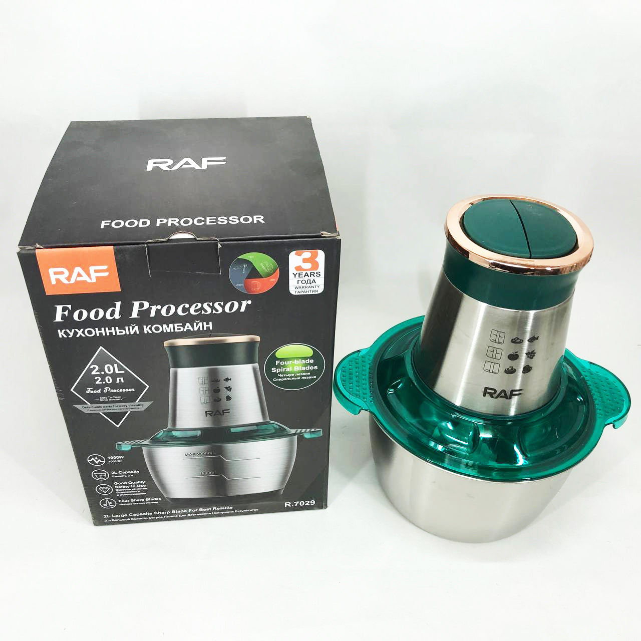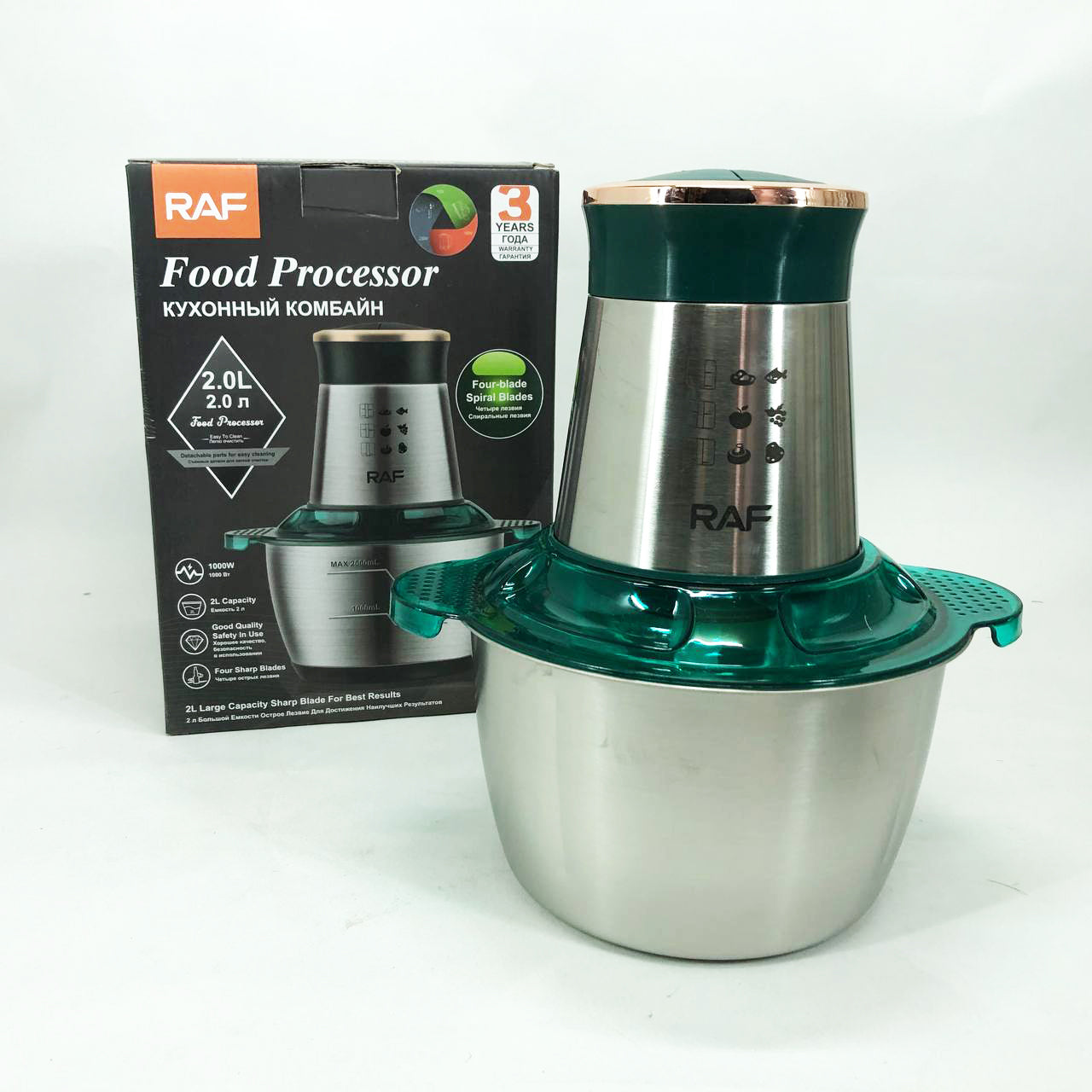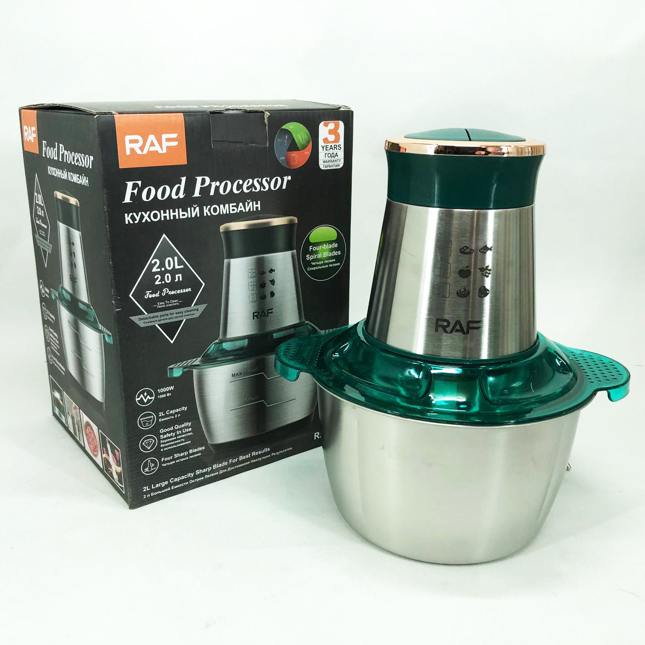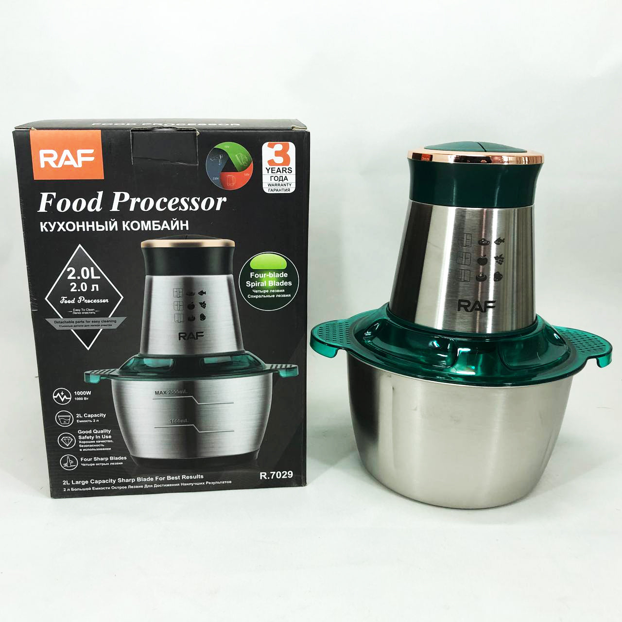 Кухонный комбайн RAF R.7029 электрический блендер измельчитель мясорубка 1000 Вт 2л, Мощный блендер