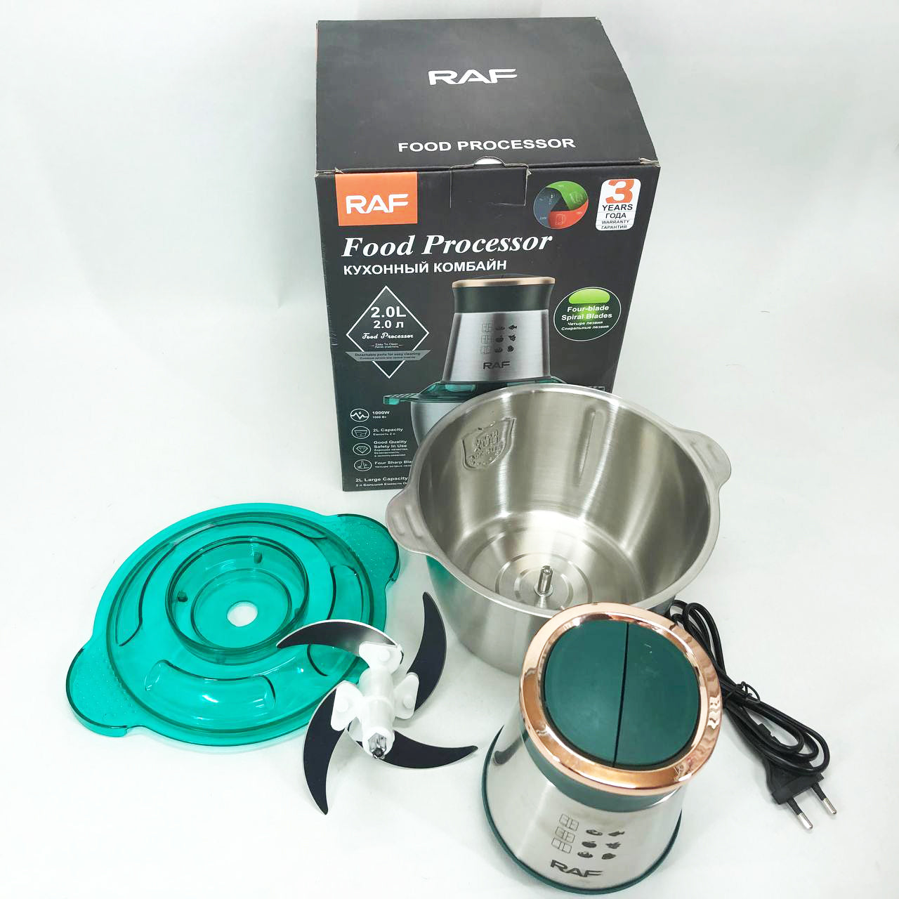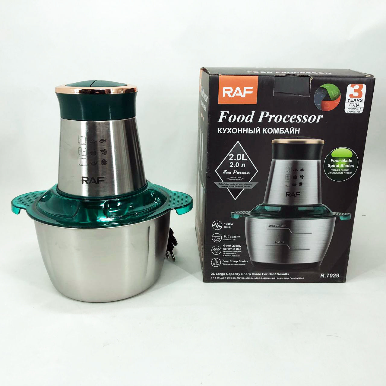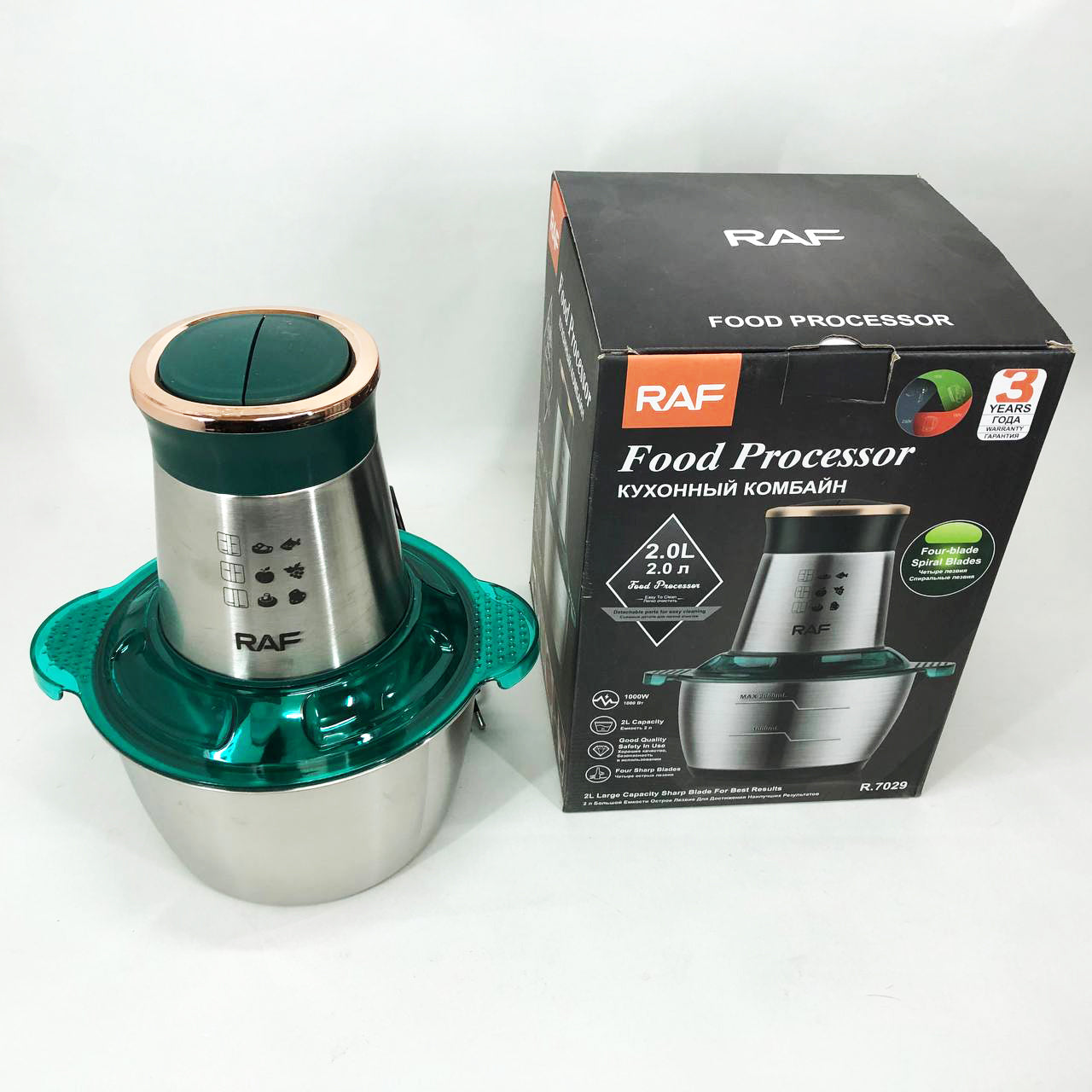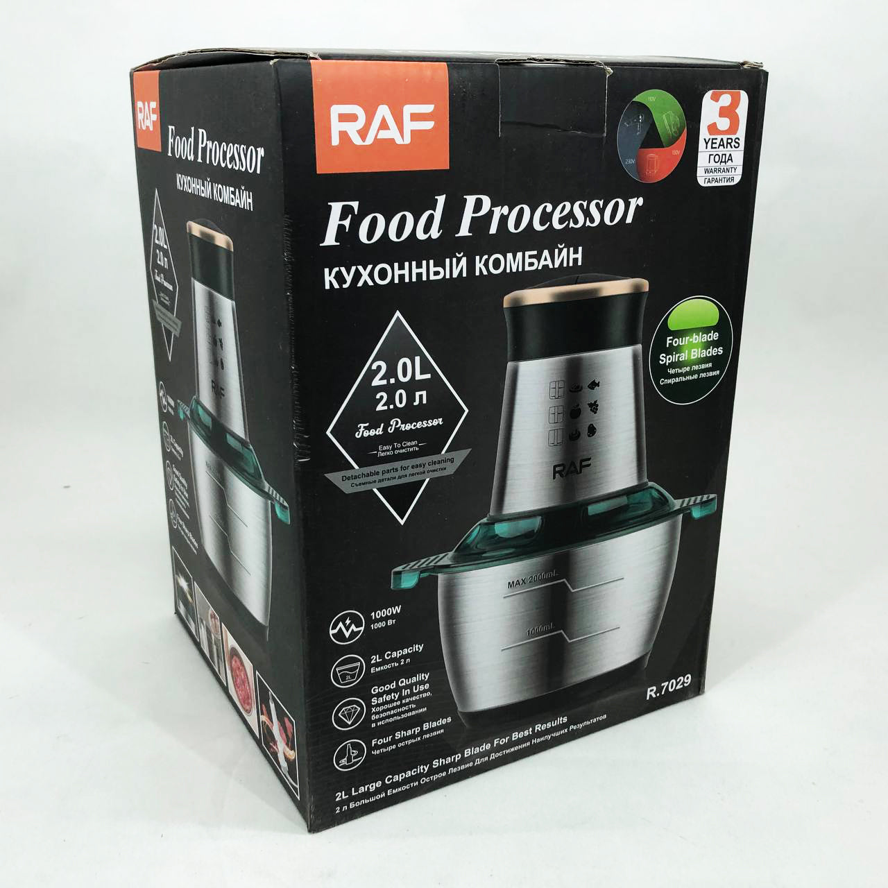 Кухонный комбайн RAF R.7029 электрический блендер измельчитель мясорубка 1000 Вт 2л, Мощный блендер