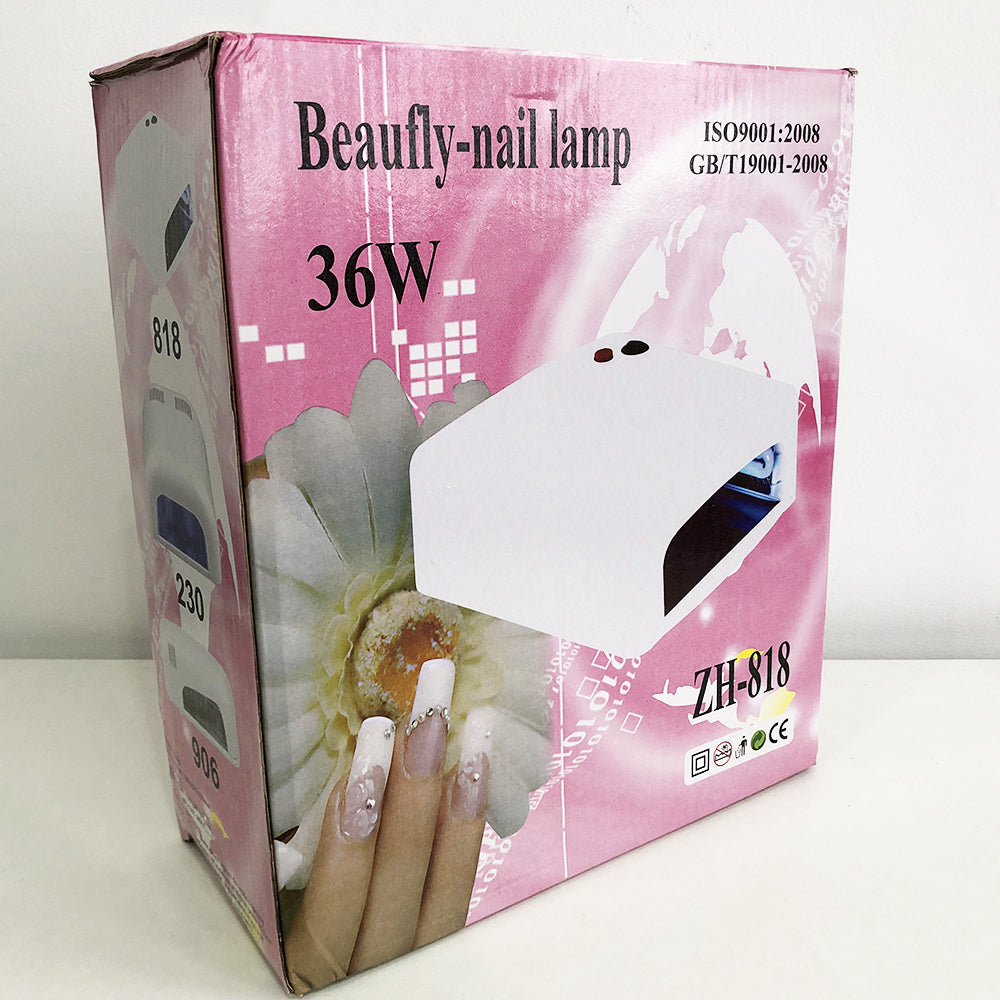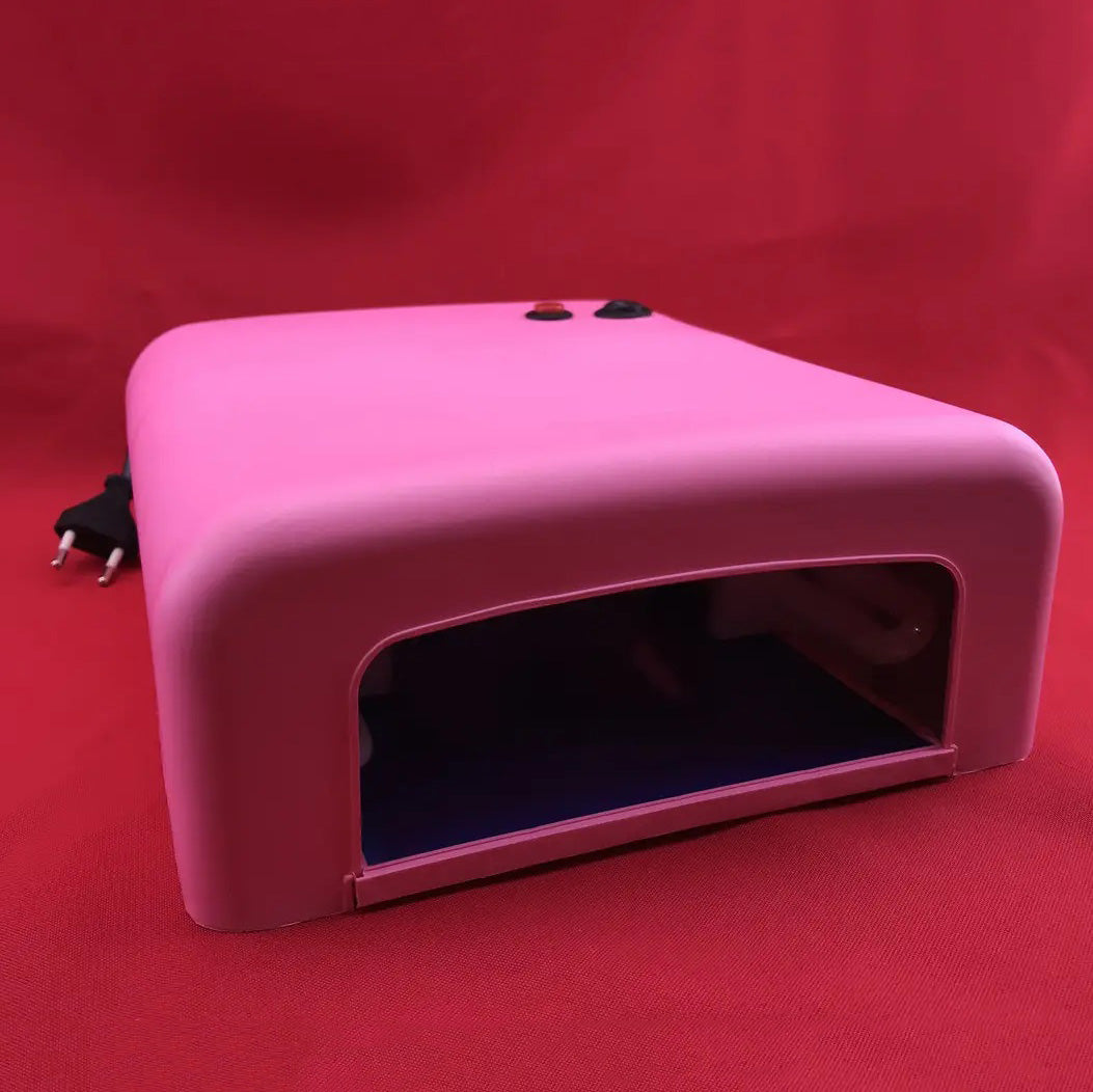 Профессиональная УФ лампа для наращивания ногтей, для полимеризации гелей, акрила и гель-лаков.Значительно улучшено качество по сравнению с более дешевыми моделями.Мощность 36 Вт, 4 сменных лампы по 9 Вт. Имеет отражателями для лучшего распределения УФ лучей. Расположение ламп – 2 по бокам и 2 вверху – способствует равномерной полимеризации геля. Нижняя панель съёмная, позволяет использовать лампу при моделировании ногтей на ногах, а также значительно упрощает замену лампочек. Таймер на 120 секунд и бесконечность, вес – 1 кг.