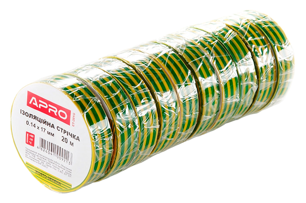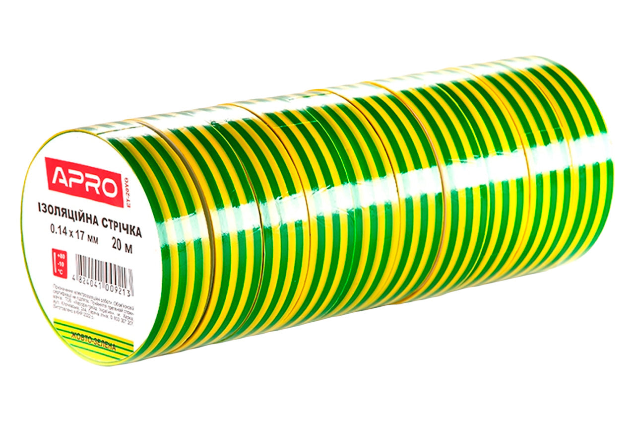 Лента изоляционная Apro - 10 м x 17 x 0,14 мм желто-зеленая